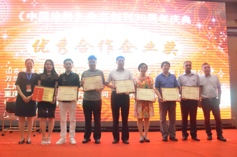 《中國(guó)涂料》卅周年優(yōu)秀合作企業(yè)獎(jiǎng)