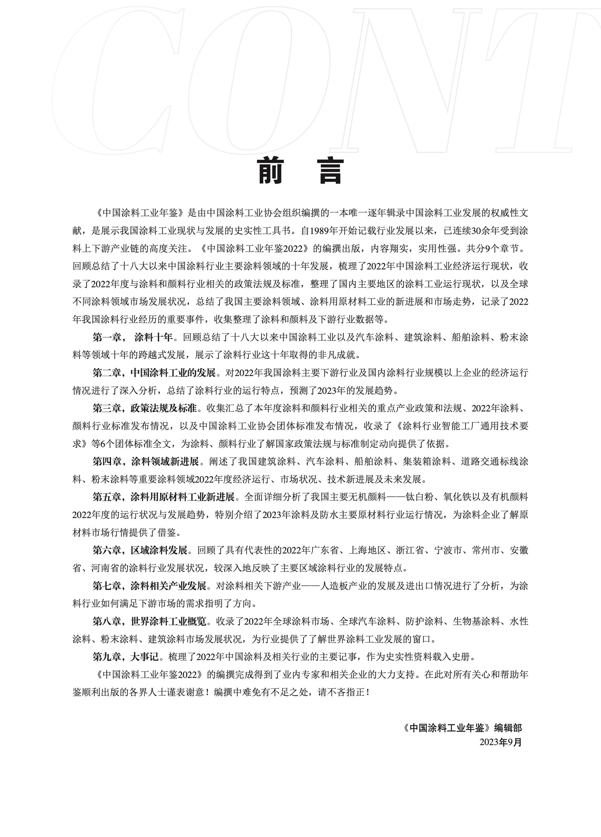 《中國(guó)涂料工業(yè)年鑒》是由中國(guó)涂料工業(yè)協(xié)會(huì)組織編撰的一本唯一逐年輯錄中國(guó)涂料工業(yè)發(fā)展的權(quán)威性文獻(xiàn),是展示我國(guó)涂料工業(yè)現(xiàn)狀與發(fā)展的史實(shí)性工具書(shū)。自1989年開(kāi)始記載行業(yè)發(fā)展以來(lái),已連續(xù)30余年受到涂料上下游產(chǎn)業(yè)鏈的高度關(guān)注。