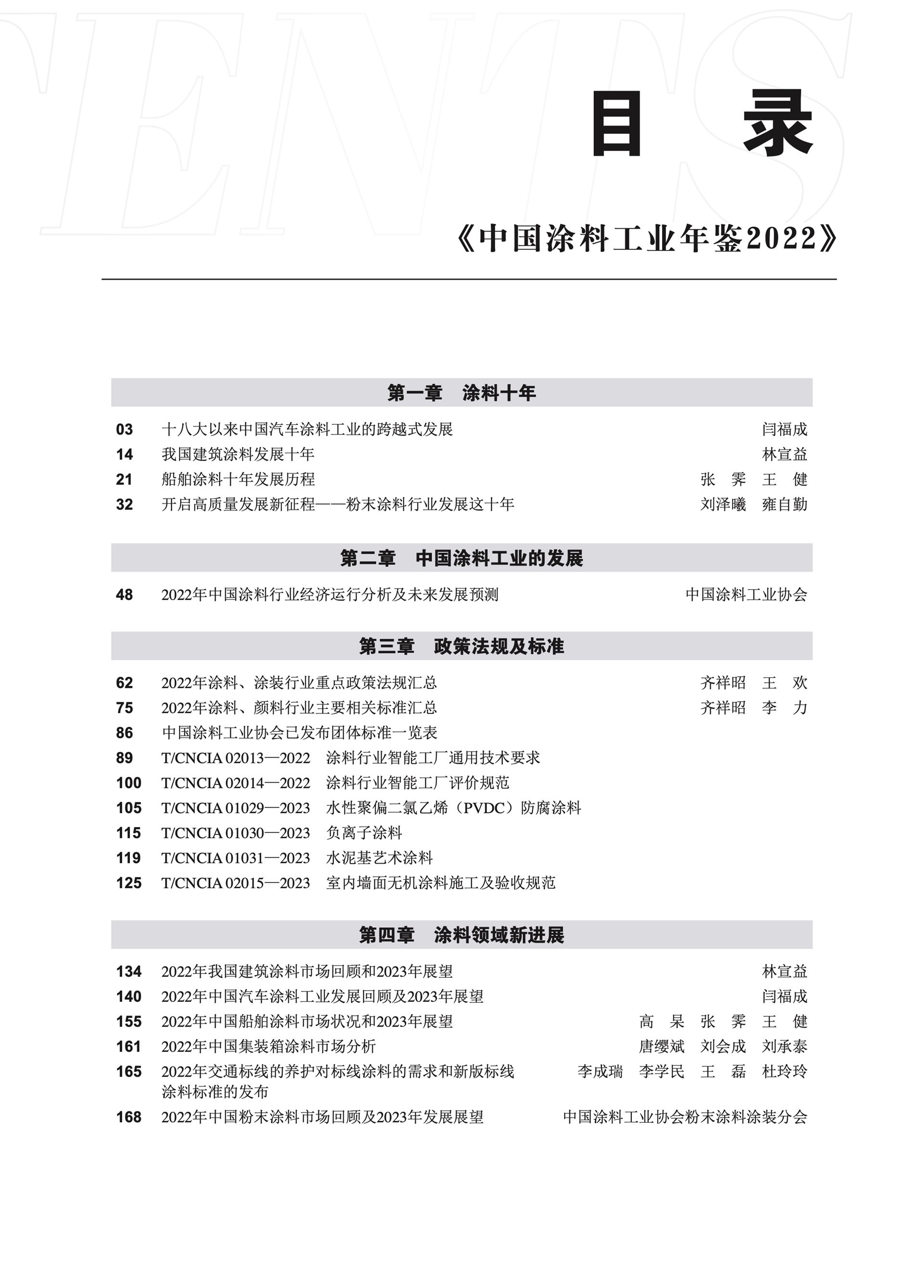 《中國(guó)涂料工業(yè)年鑒2022》的編撰出版,內(nèi)容翔實(shí),實(shí)用性強(qiáng)。共分9個(gè)章節(jié)。回顧總結(jié)了十八大以來(lái)中國(guó)涂料行業(yè)主要涂料領(lǐng)域的十年發(fā)展,梳理了2022年中國(guó)涂料工業(yè)經(jīng)濟(jì)運(yùn)行現(xiàn)狀,收錄了2022年度與涂料和顏料行業(yè)相關(guān)的政策法規(guī)及標(biāo)準(zhǔn),整理了國(guó)內(nèi)主要地區(qū)的涂料工業(yè)運(yùn)行現(xiàn)狀,以及全球不同涂料領(lǐng)域市場(chǎng)發(fā)展?fàn)顩r,總結(jié)了我國(guó)主要涂料領(lǐng)域、涂料用原材料工業(yè)的新進(jìn)展和市場(chǎng)走勢(shì),記錄了2022年我國(guó)涂料行業(yè)經(jīng)歷的重要事件,收集整理了涂料和顏料及下游行業(yè)數(shù)據(jù)等。