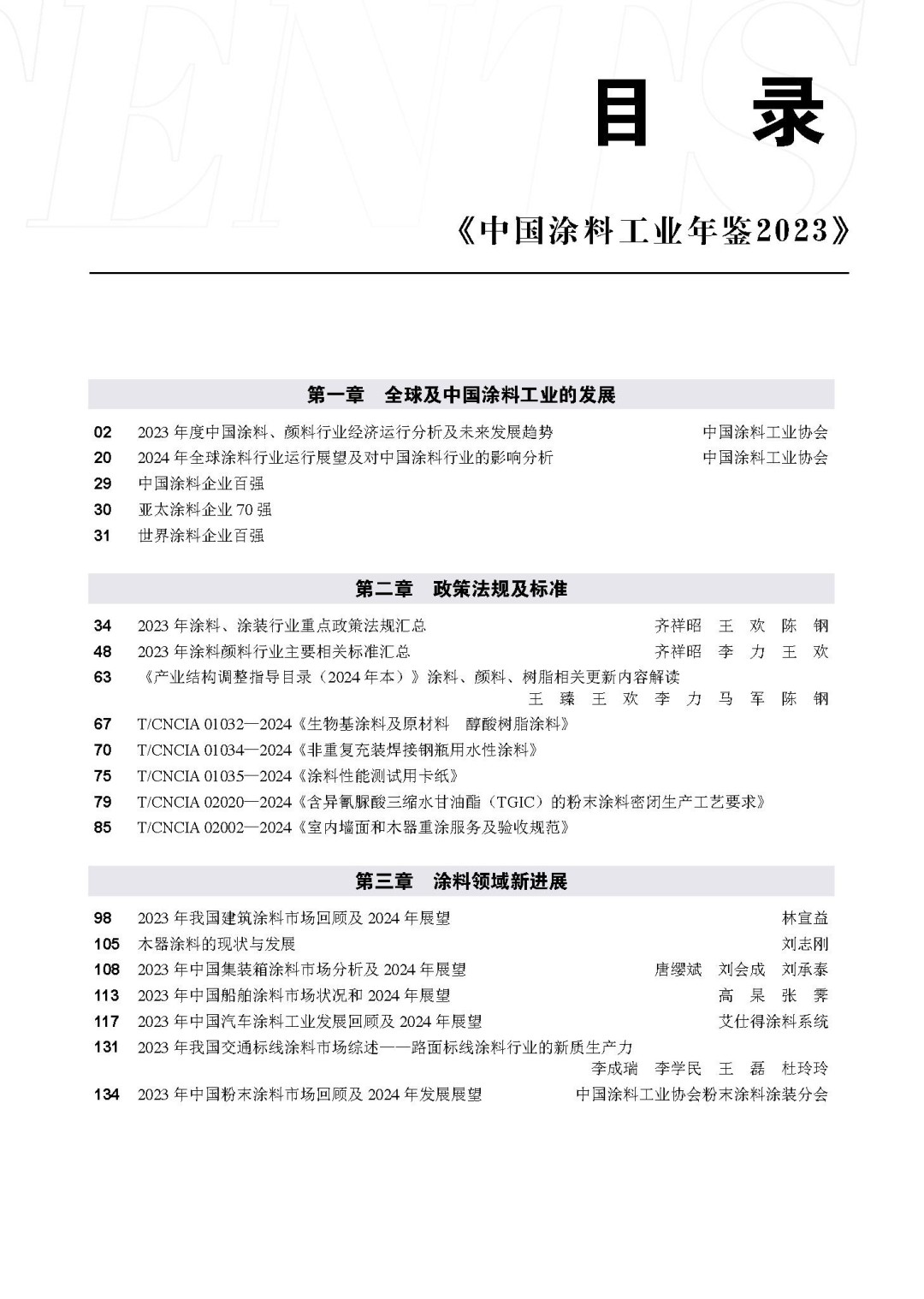 第二章,政策法規及標準。收集匯總了2023年度涂料和顏料行業相關的重點產業政策和法規、2023年涂料顏料國家標準、行業標準和團體標準發布情況,解讀了《產業結構調整指導目錄(2024年本)》涂料、顏料、樹脂相關更新內容,收錄了《生物基涂料及原材料 醇酸樹脂涂料》等5個團體標準全文,為涂料、顏料行業了解國家政策法規與標準制定提供了依據。