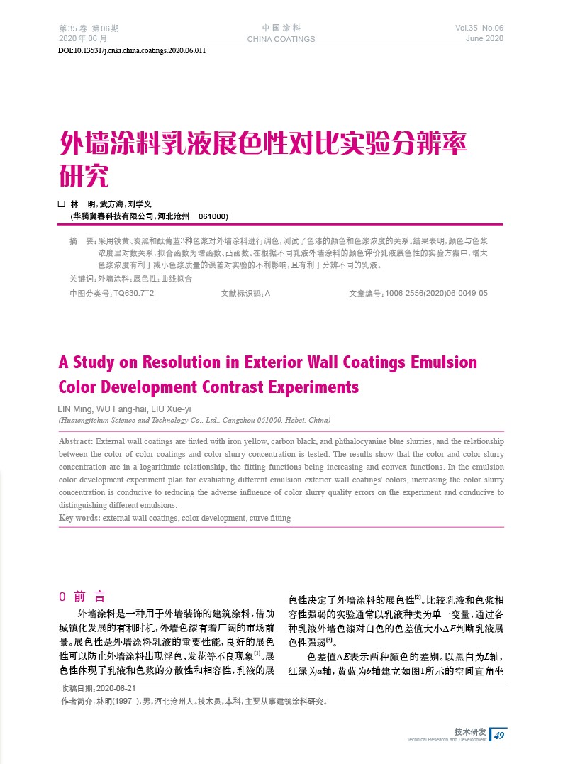 外墻涂料乳液展色性對比實驗分辨率研究