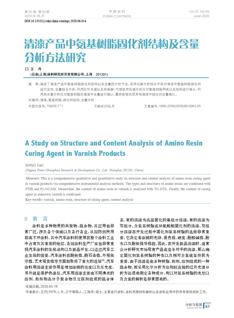 清漆產品中氨基樹脂固化劑結構及含量分析方法研究