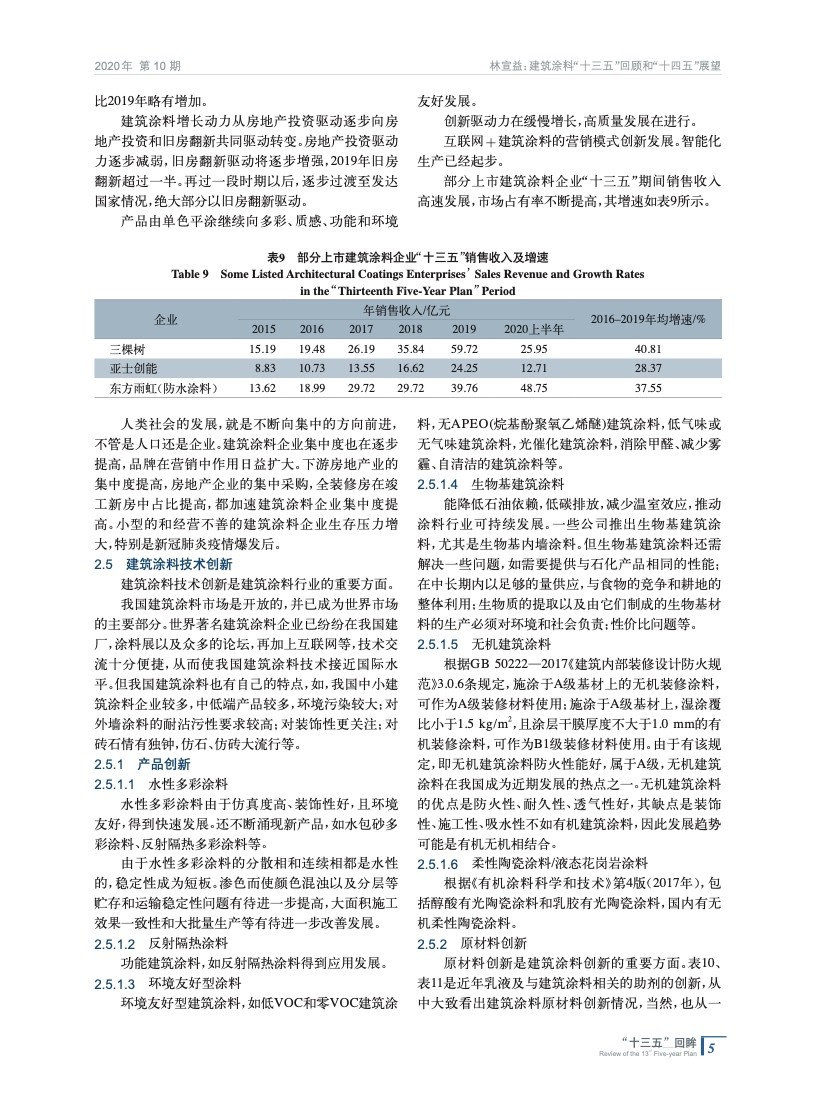摘要:從建筑涂料的市場(chǎng)背景入手,從建筑涂料的產(chǎn)能、產(chǎn)量、進(jìn)出口、結(jié)構(gòu)調(diào)整、技術(shù)創(chuàng)新、環(huán)保等方面,對(duì)“十三五”期間中國(guó)建筑涂料工業(yè)作了概括性總結(jié),指出了我國(guó)建筑涂料與世界的差距,并對(duì)“十四五”期間的我國(guó)建筑涂料工業(yè)發(fā)展進(jìn)行了展望。
