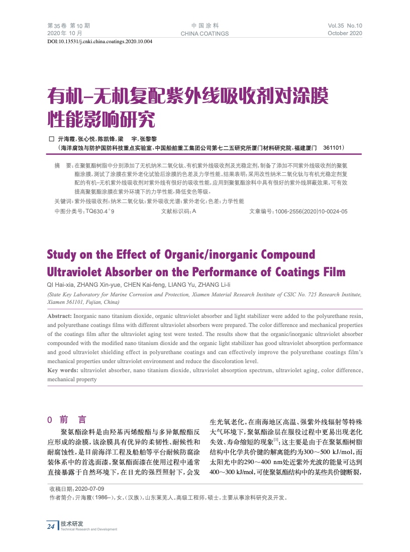 本文系作者@亓海霞,張心悅,陳凱鋒,梁 宇,張黎黎 授權中國涂料網發表,并經中國涂料網編輯,未經允許不得轉載,如需轉載請聯系chinacoatingnet@vip.163.com