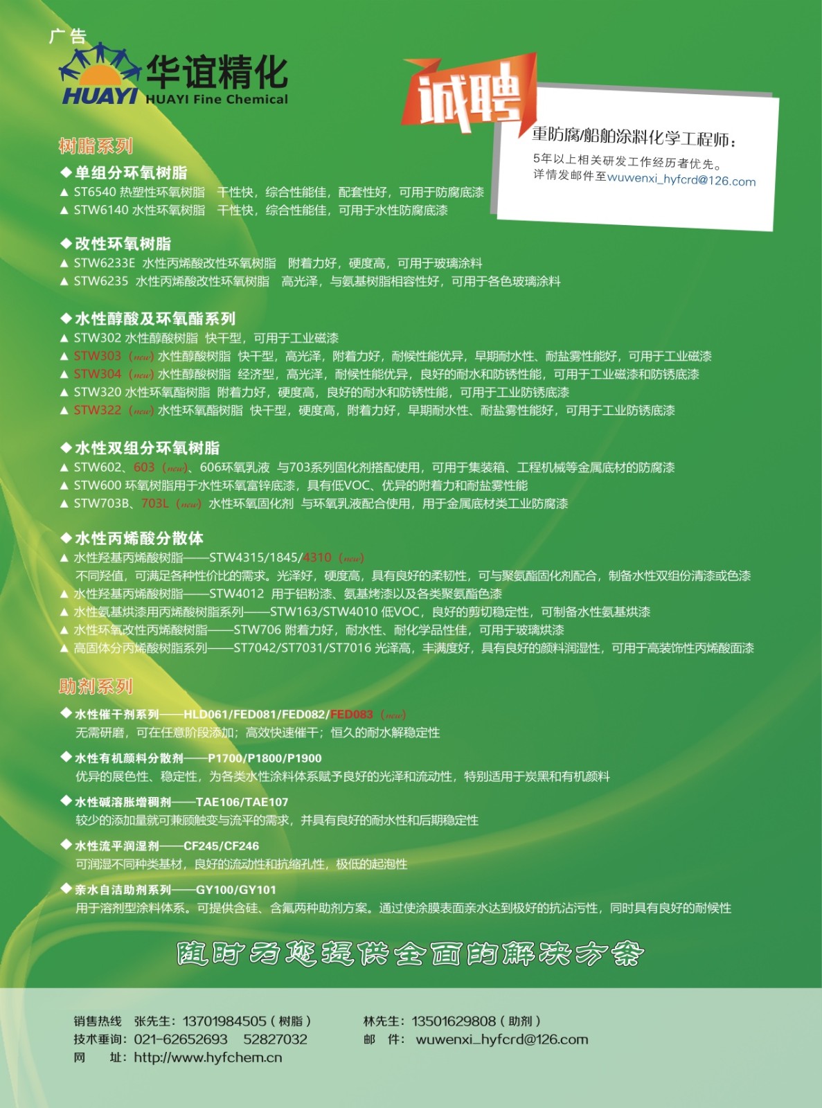 封1:中山大橋化工集團有限公司;封2:上海華誼精細化工有限公司技術中心;封3:公益廣告;封4:浙江華源顏料股份有限公司