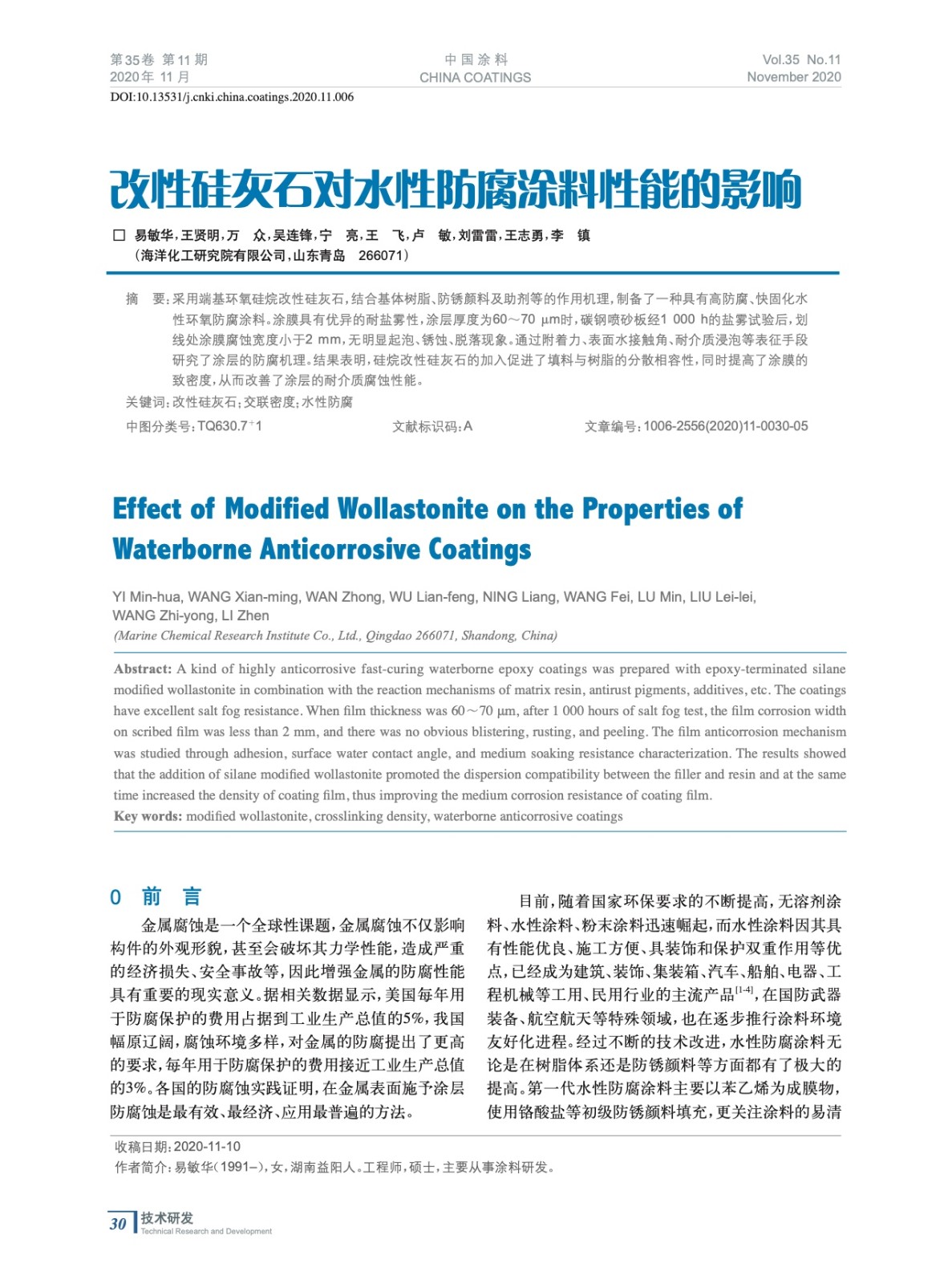 本文系作者@易敏華,王賢明,萬 眾,吳連鋒,寧 亮,王 飛,盧 敏,劉雷雷,王志勇,李 鎮(zhèn) 授權(quán)中國涂料網(wǎng)發(fā)表,并經(jīng)中國涂料網(wǎng)編輯,未經(jīng)允許不得轉(zhuǎn)載,如需轉(zhuǎn)載請聯(lián)系chinacoatingnet@vip.163.com