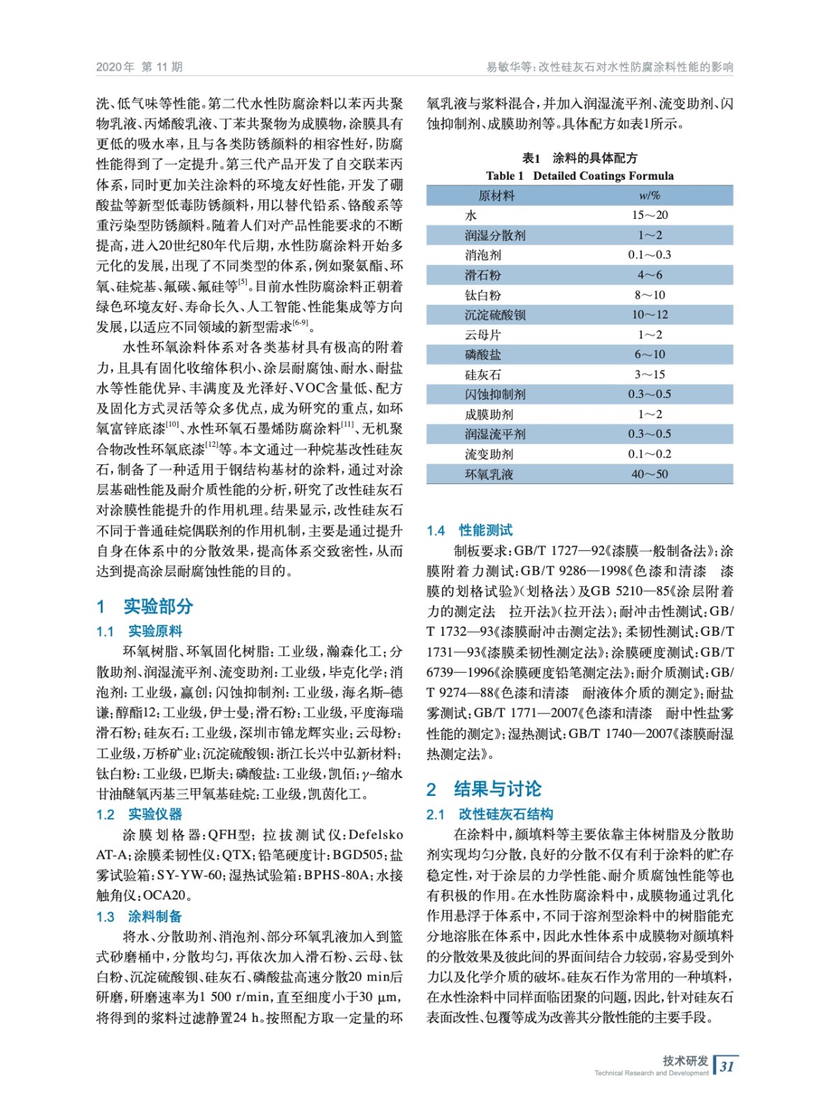 改性硅灰石對水性防腐涂料性能的影響