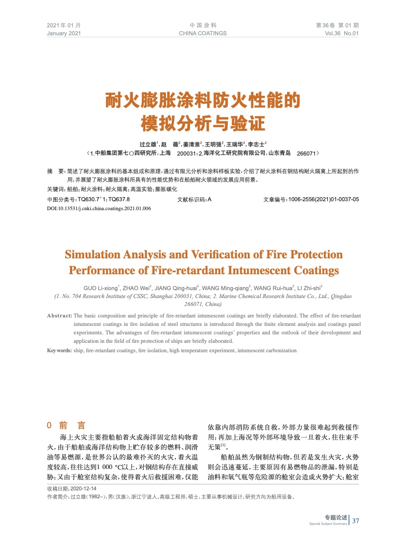 摘要:簡述了耐火膨脹涂料的基本組成和原理。通過有限元分析和涂料樣板實驗,介紹了耐火涂料在鋼結(jié)構(gòu)耐火隔離上所起到的作用,并展望了耐火膨脹涂料所具有的性能優(yōu)勢和在船舶耐火領(lǐng)域的發(fā)展應(yīng)用前景。