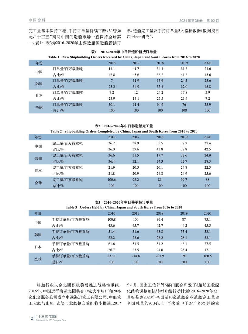 船舶涂料行業(yè)“十三五”回眸及“十四五”展望