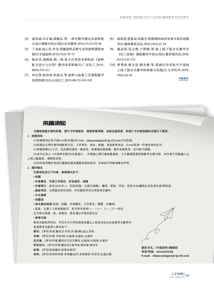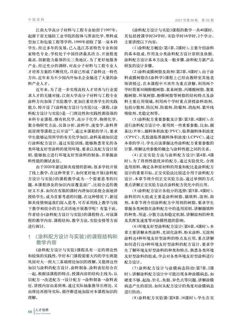 分析了《涂料配方設計與實驗》這門課程的特點及存在的問題,以提高課程教學質量為主要目標,探討新冠疫情背景下引入新的教學模式,如采用“線上線下”混合式教學,并優化課程的教學內容和考核方式,為涂料行業培養更多具有專業知識和實踐能力的高素質人才。