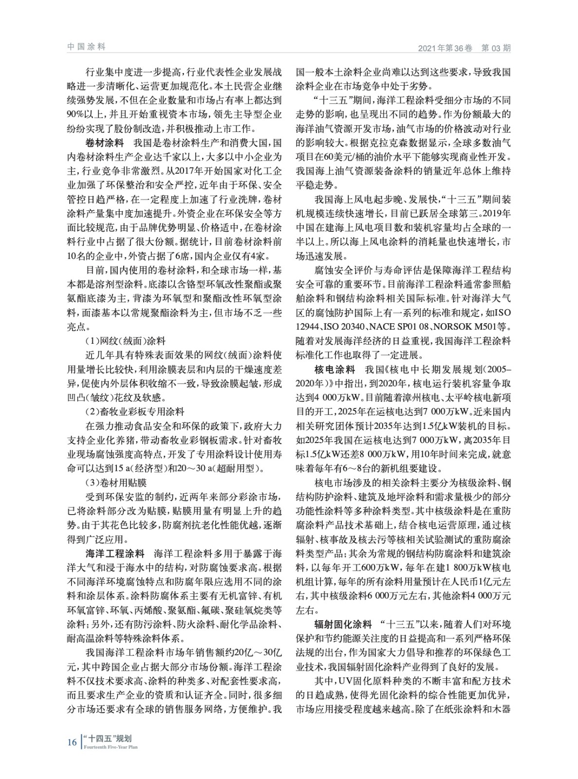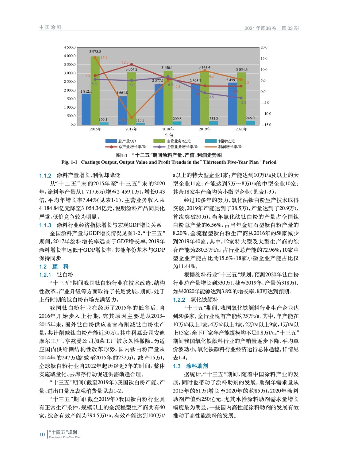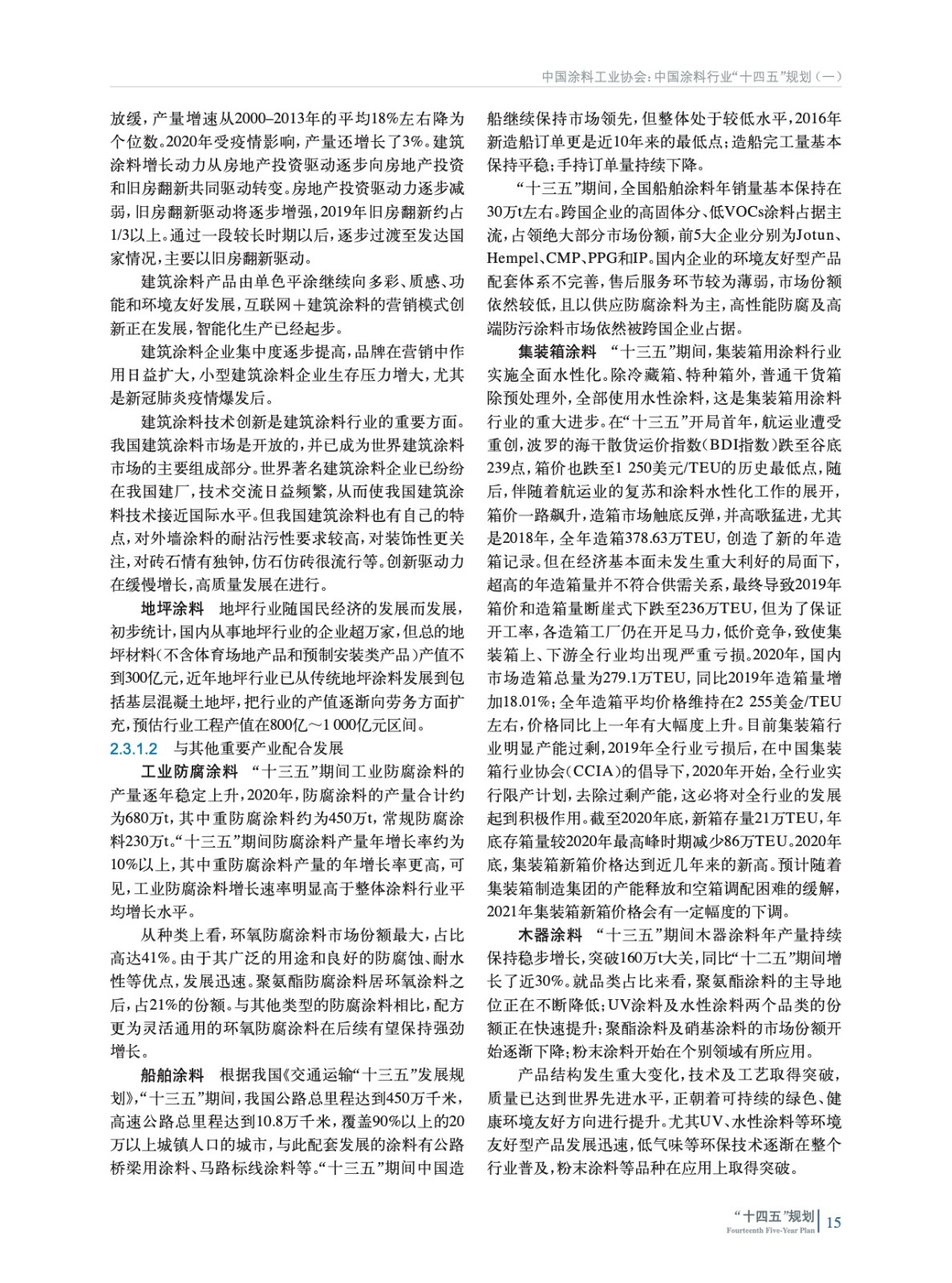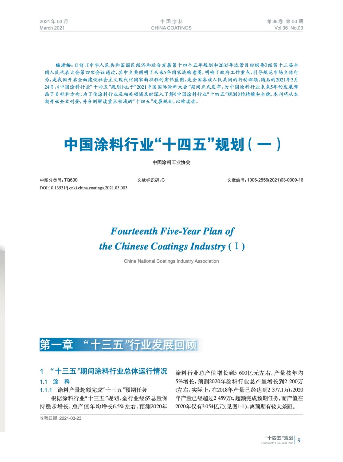 摘要:編者按:2021年3月24日,《中國涂料行業“十四五”規劃》于“2021中國國際涂料大會”期間正式發布,為中國涂料行業未來5年的發展擘畫了目標和方向。為了使涂料行業及相關領域及時深入了解《中國涂料行業“十四五”規劃》的精髓和全貌,本刊將從本期開始全文刊登,并分別解讀重點領域的“十四五”發展規劃,以饗讀者。