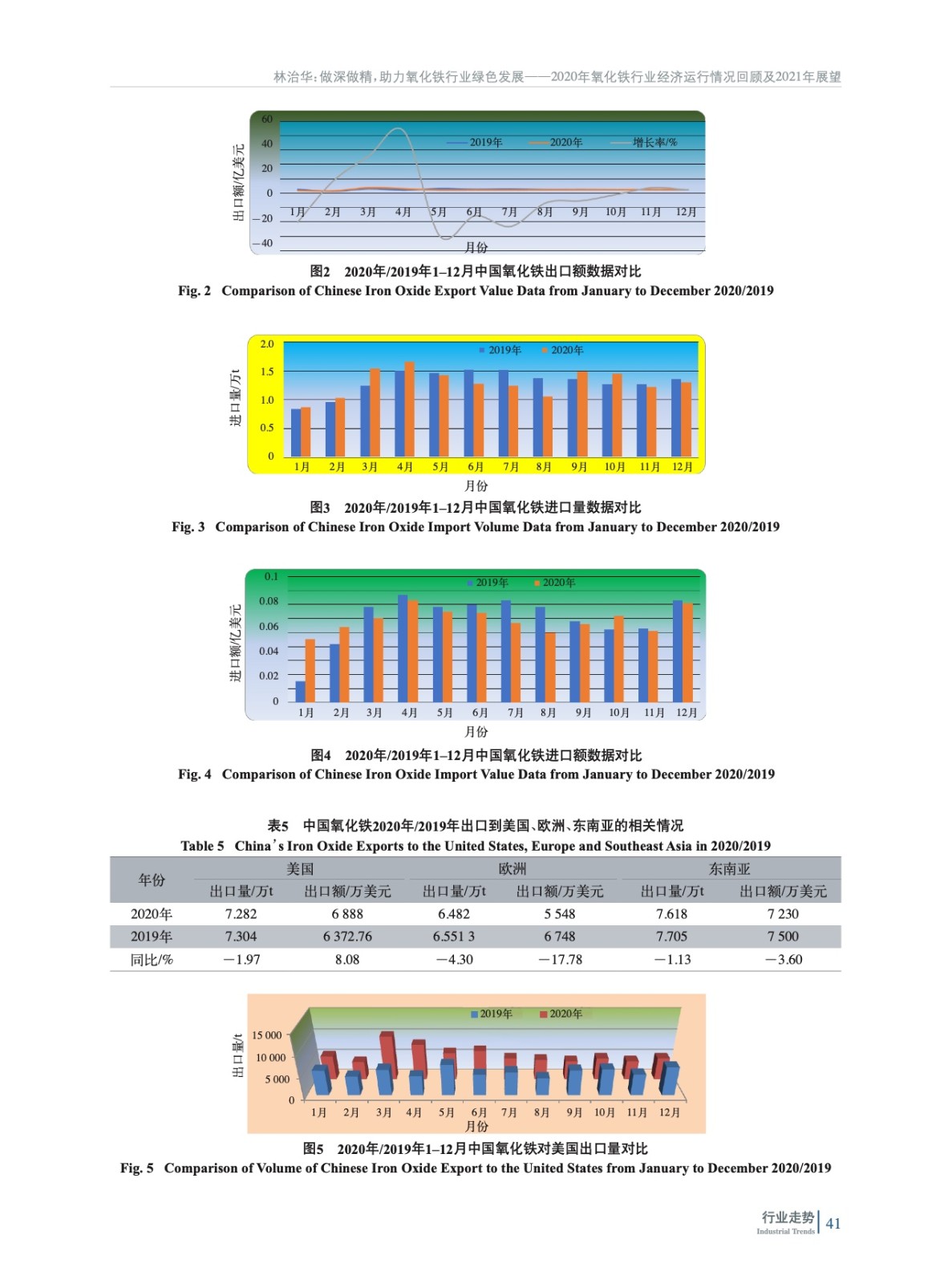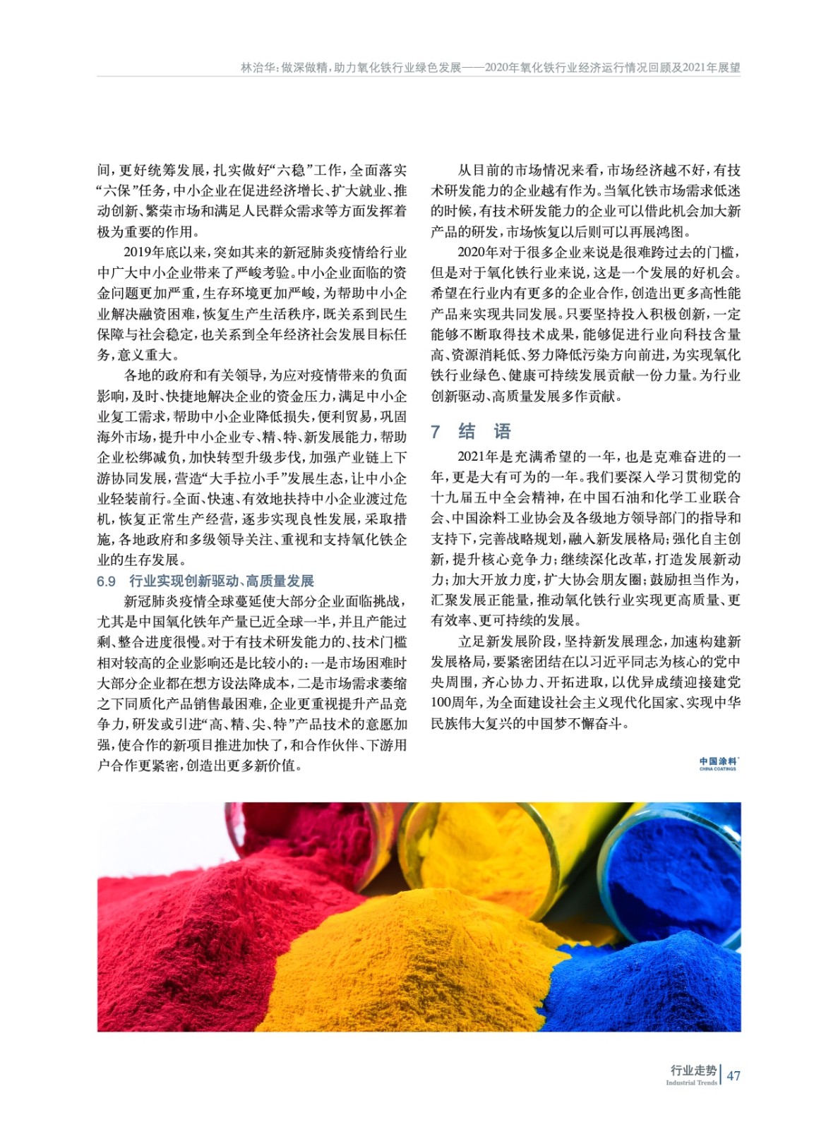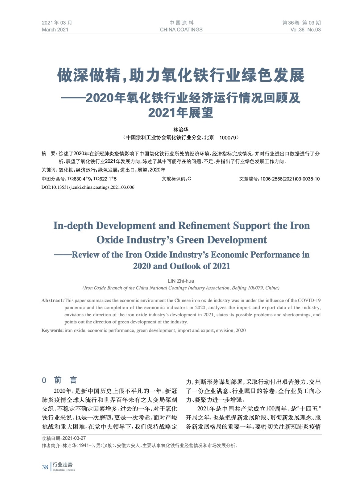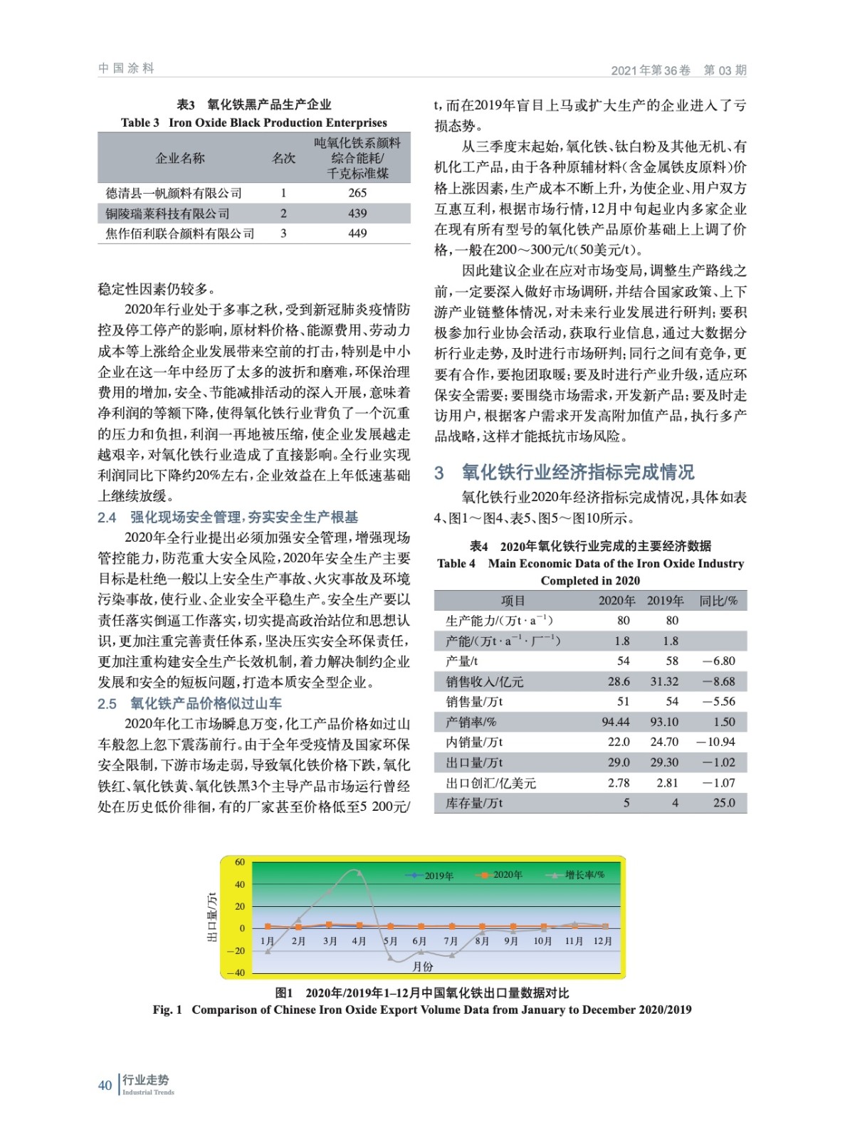 摘要:綜述了2020年在新冠肺炎疫情影響下中國氧化鐵行業所處的經濟環境,經濟指標完成情況,并對行業進出口數據進行了分析,展望了氧化鐵行業2021年發展方向,陳述了其中可能存在的問題、不足,并指出了行業綠色發展工作方向。