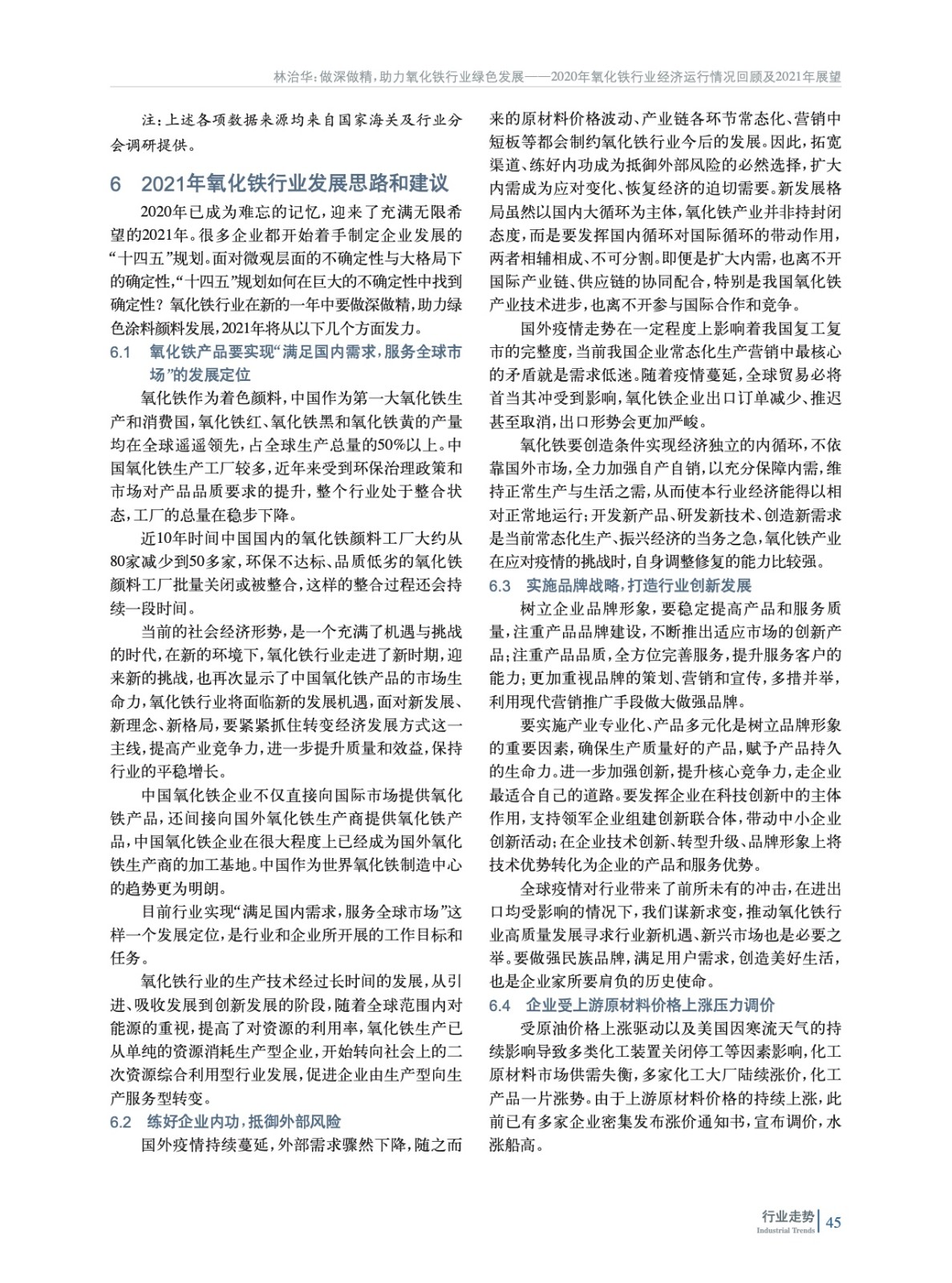 做深做精,助力氧化鐵行業綠色發展——2020年氧化鐵行業經濟運行情況回顧及2021年展望