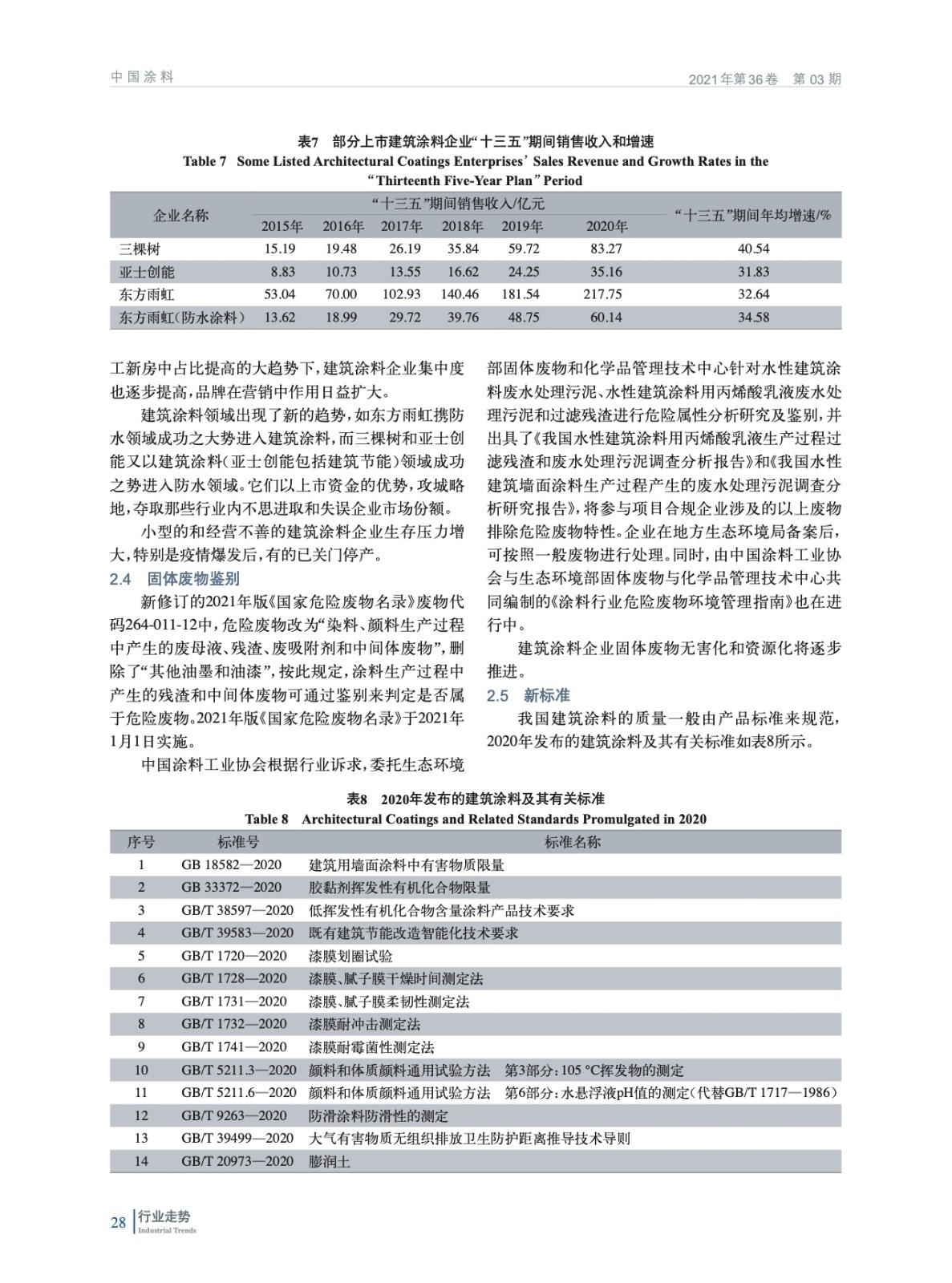 介紹了2020年我國建筑涂料的發展背景和動力,從產量和銷售收入、產品創新、行業結構調整、固體廢物鑒定、標準發布實施等方面總結了建筑涂料2020年現狀,并對2021年建筑涂料發展趨勢進行了展望。