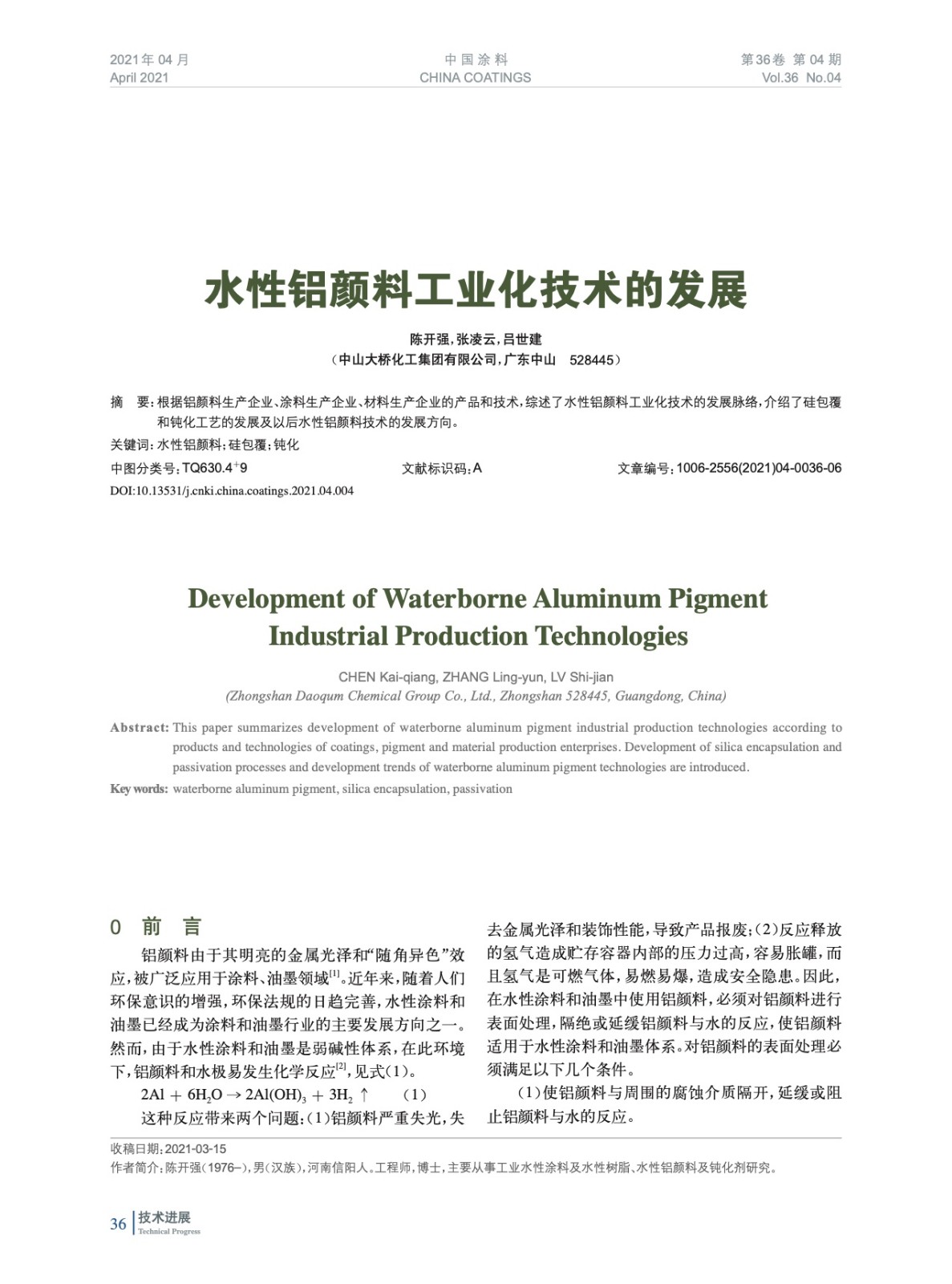 根據鋁顏料生產企業、涂料生產企業、材料生產企業的產品和技術,綜述了水性鋁顏料工業化技術的發展脈絡,介紹了硅包覆和鈍化工藝的發展及以后水性鋁顏料技術的發展方向。