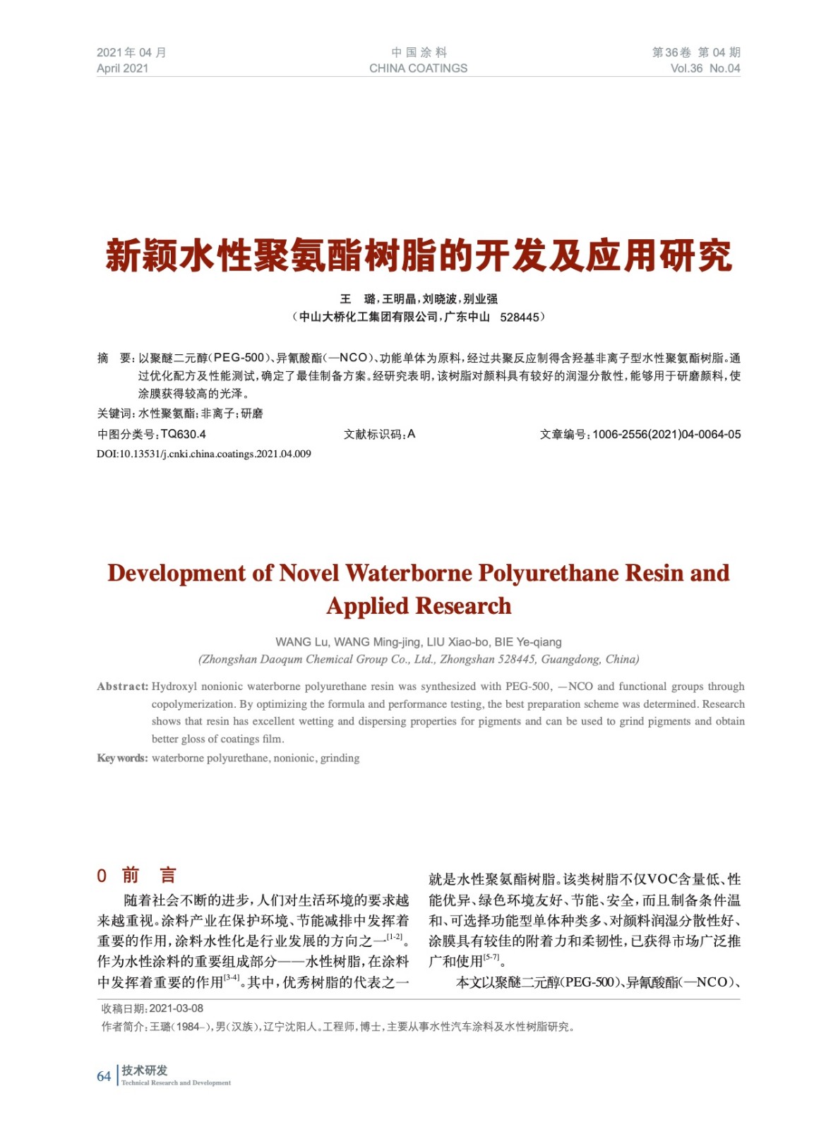 本文系作者@王 璐,王明晶,劉曉波,別業(yè)強(qiáng) 授權(quán)中國(guó)涂料網(wǎng)發(fā)表,并經(jīng)中國(guó)涂料網(wǎng)編輯,未經(jīng)允許不得轉(zhuǎn)載,如需轉(zhuǎn)載請(qǐng)聯(lián)系chinacoatingnet@vip.163.com