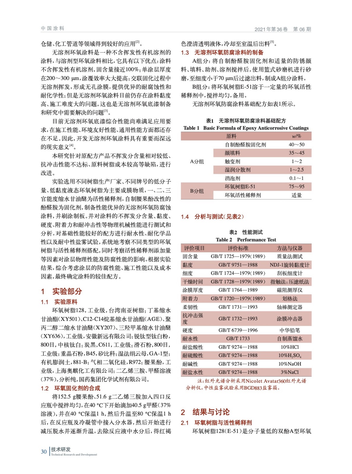 無溶劑環氧防腐涂料的制造及其性能研究