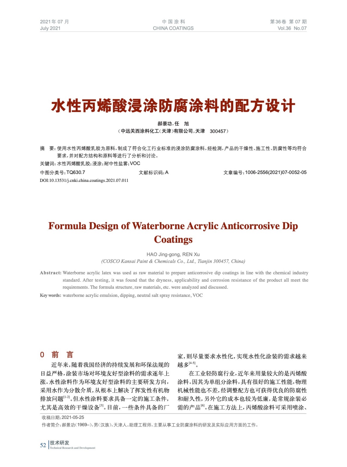 本文系作者@郝景功,任 旭 授權中國涂料網發表,并經中國涂料網編輯,未經允許不得轉載,如需轉載請聯系chinacoatingnet@vip.163.com