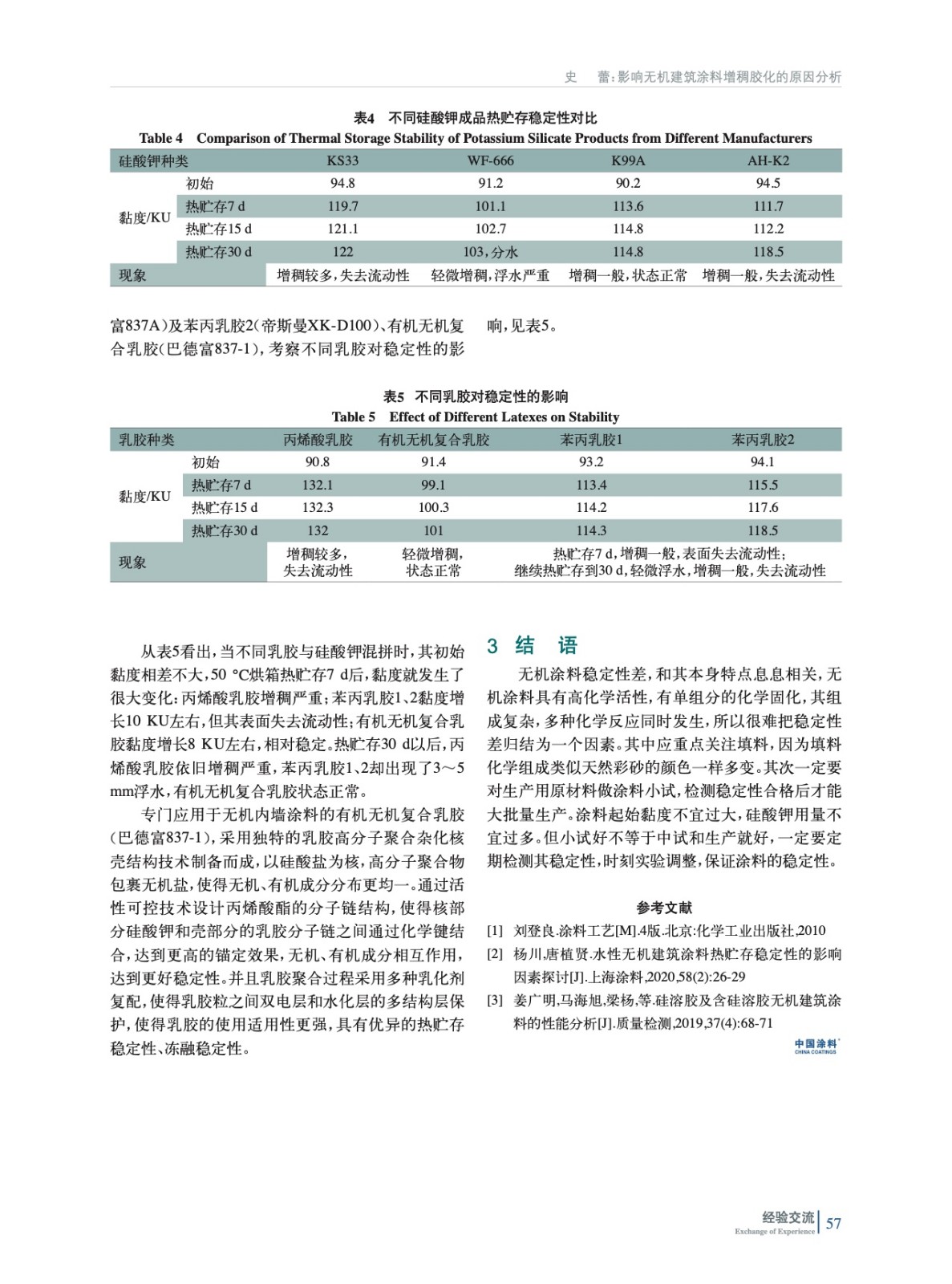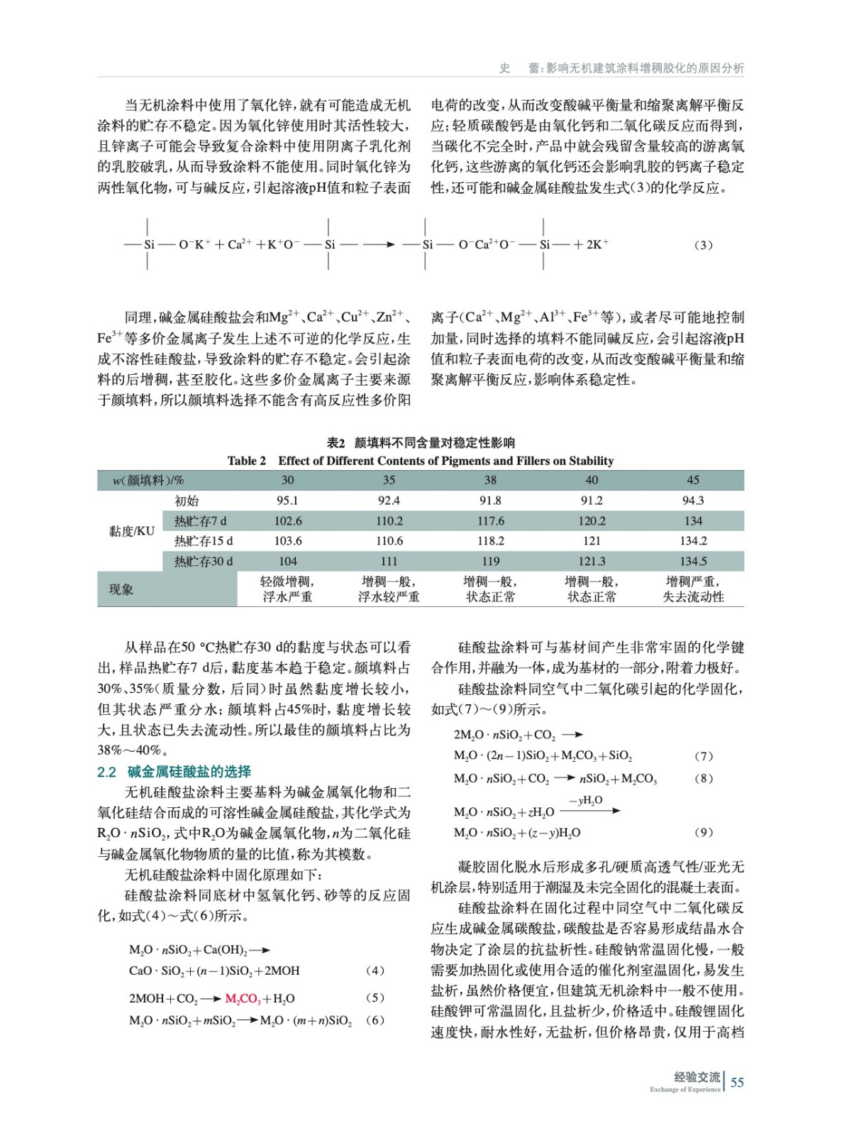 以硅酸鉀體系無機涂料為例,分析水性無機建筑涂料增稠膠化原因,主要從顏填料、硅酸鉀、乳膠等方面進行分析,通過實驗驗證,得出如何選擇原料使體系穩定性最佳。