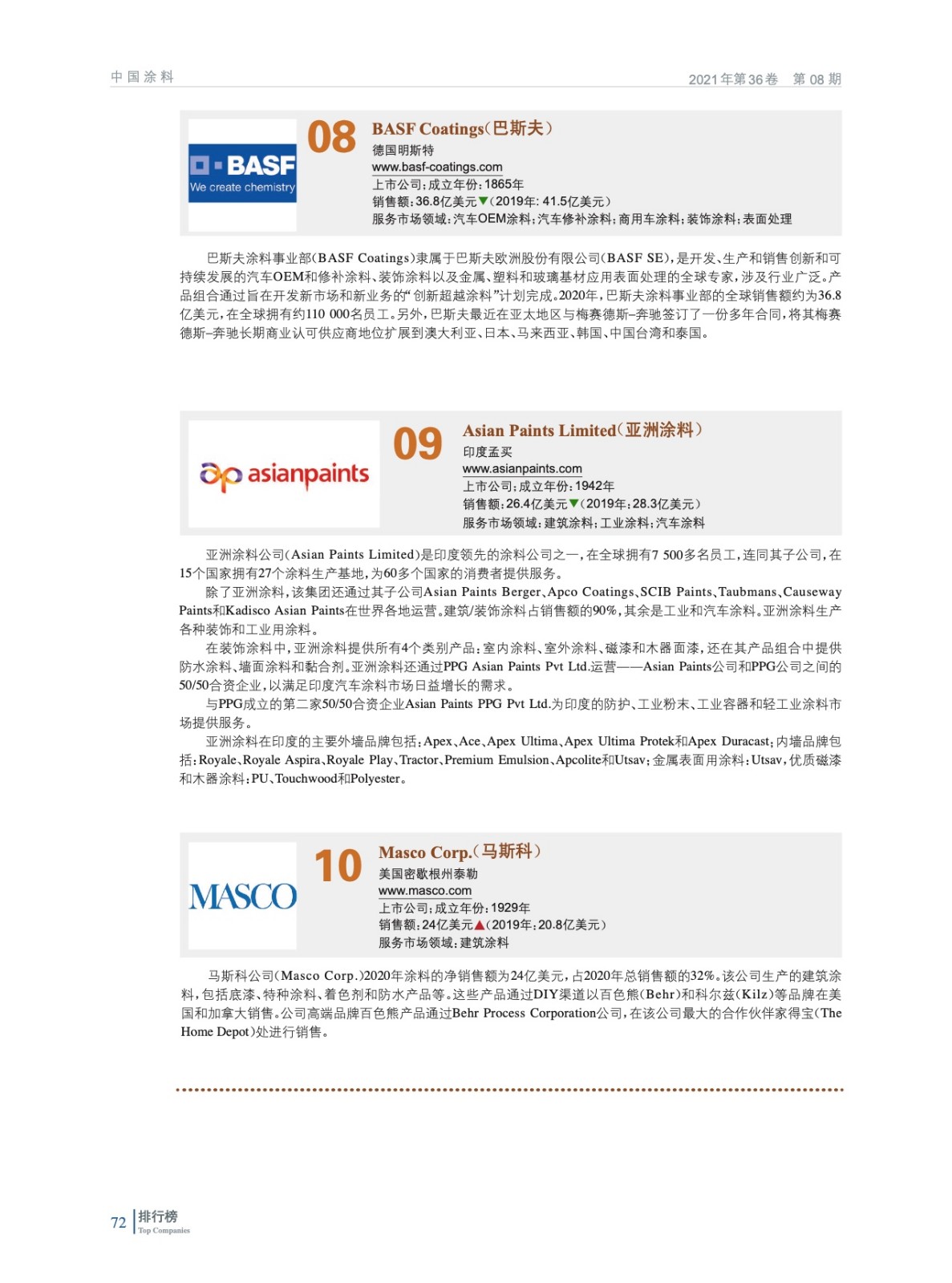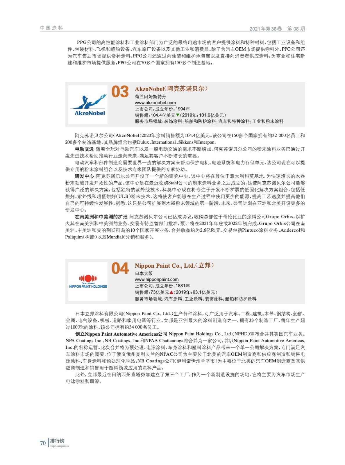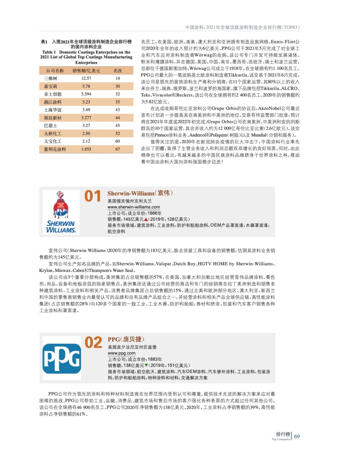 2021年全球頂級涂料制造企業(yè)排行榜(TOP 83)