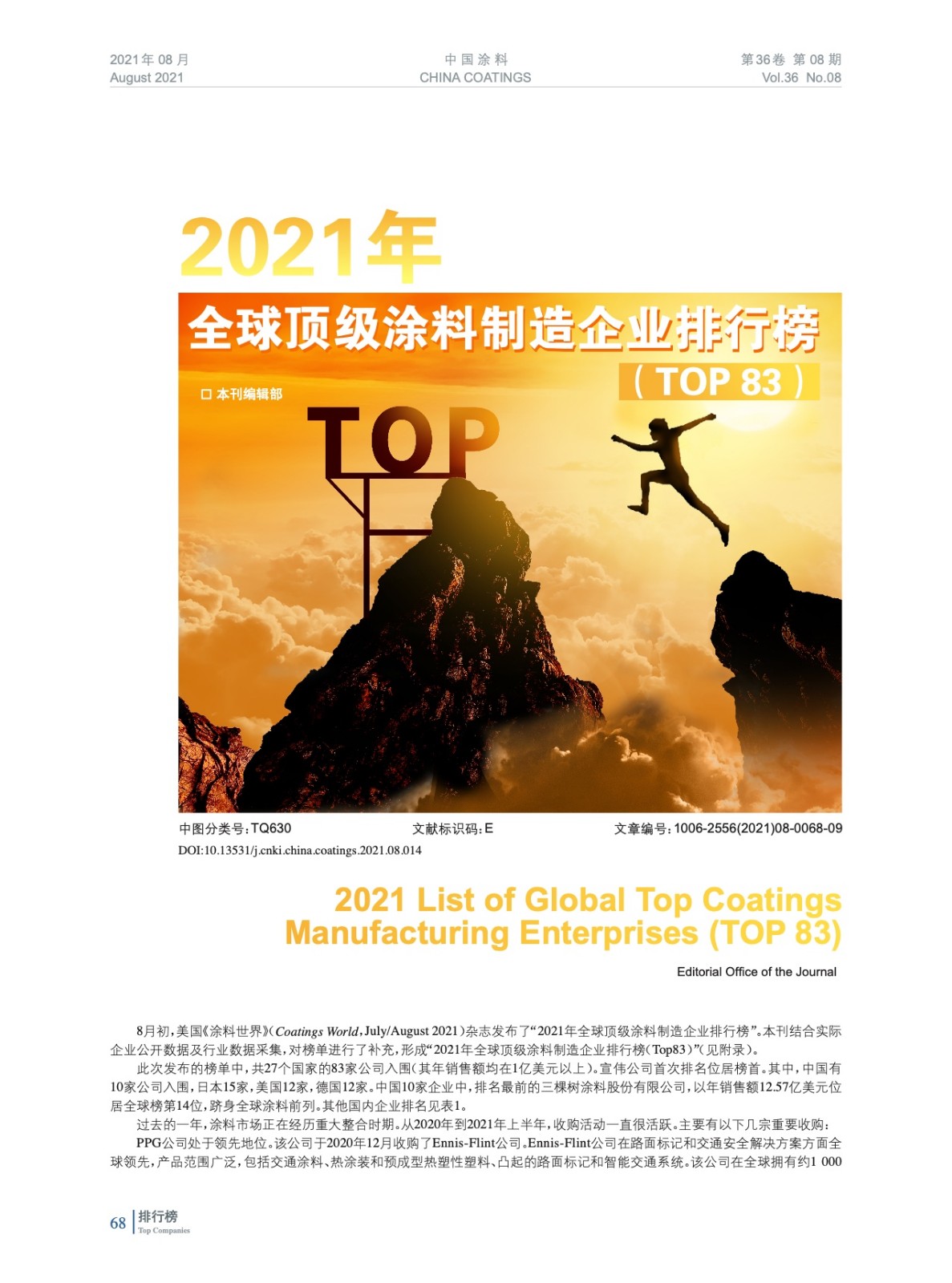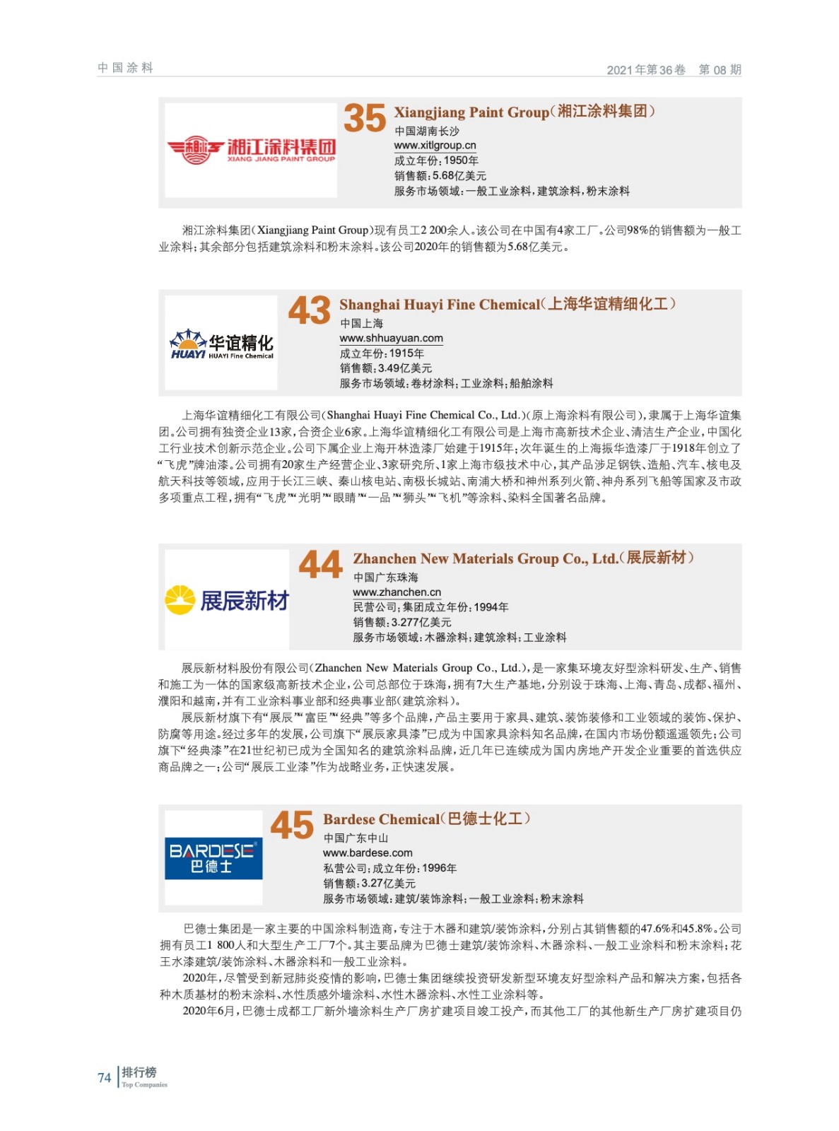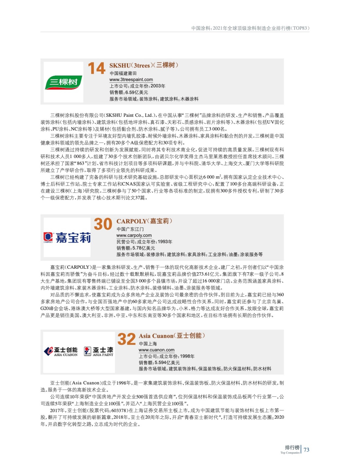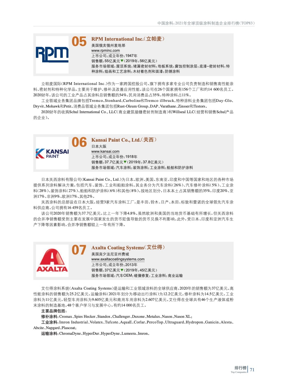 2021年全球頂級涂料制造企業(yè)排行榜(TOP 83)