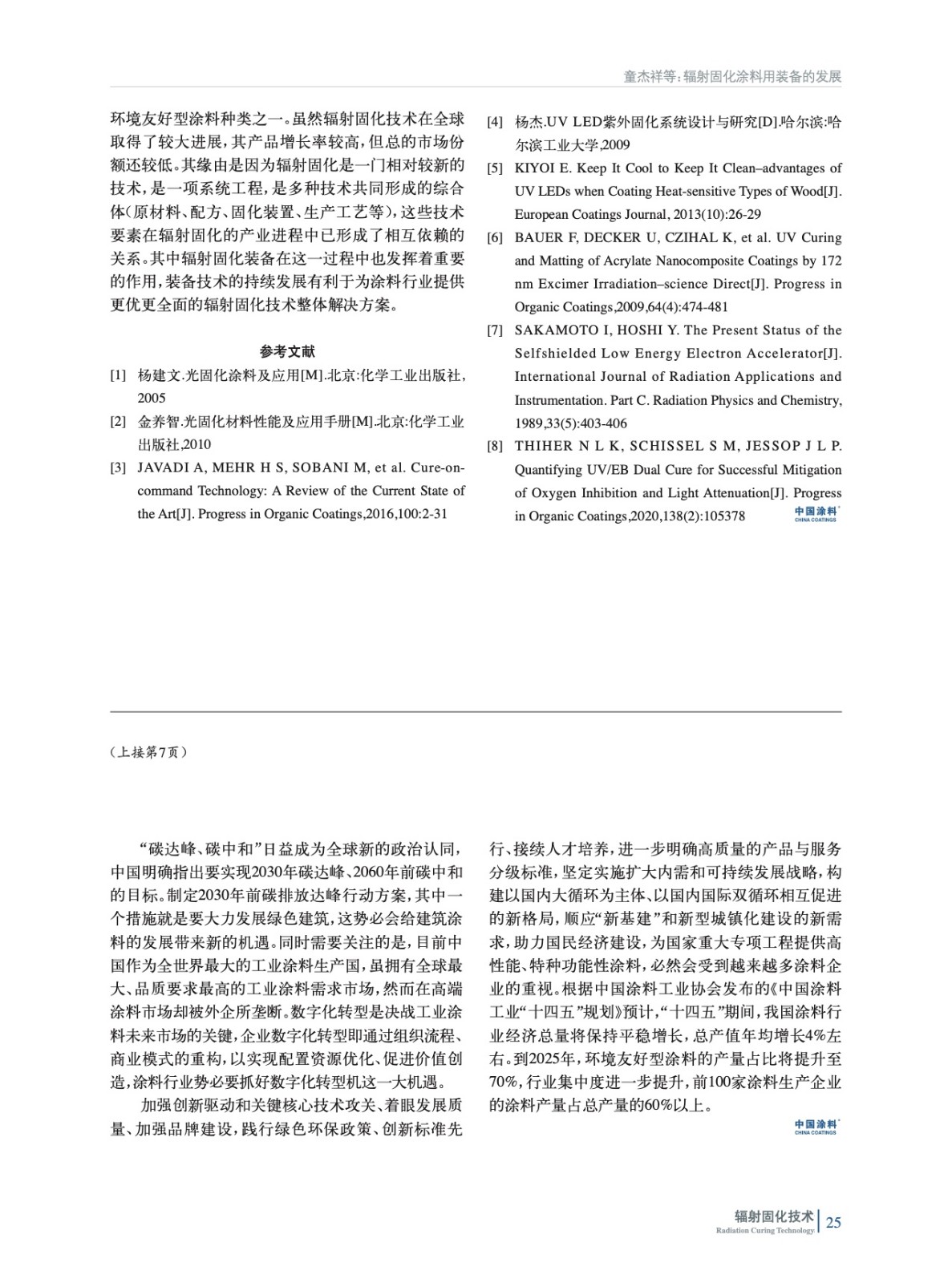 輻射固化裝置在輻射固化涂料的發展過程中發揮了重要作用,概述了紫外光固化和電子束固化機理,重點介紹了設備和電子束固化設備兩類常用輻射固化裝置的發展情況。