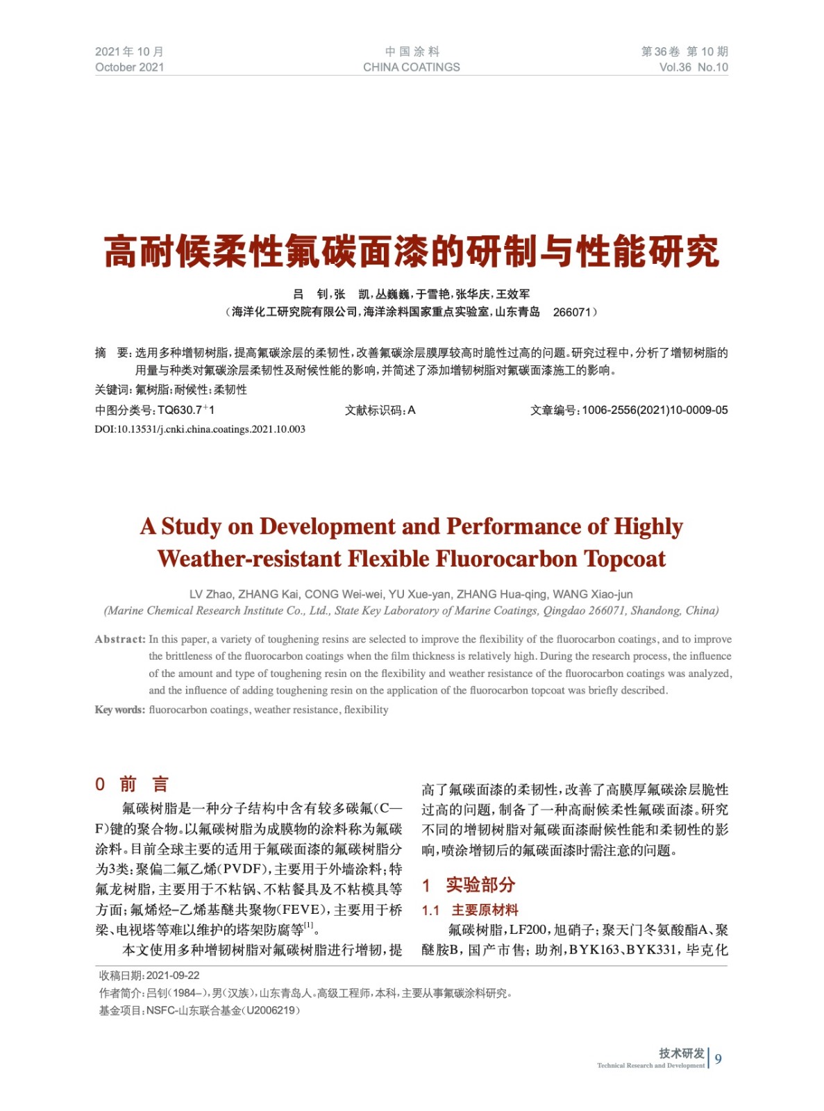 本文系作者@呂 釗,張 凱,叢巍巍,于雪艷,張華慶,王效軍 授權中國涂料網發表,并經中國涂料網編輯,未經允許不得轉載,如需轉載請聯系chinacoatingnet@vip.163.com