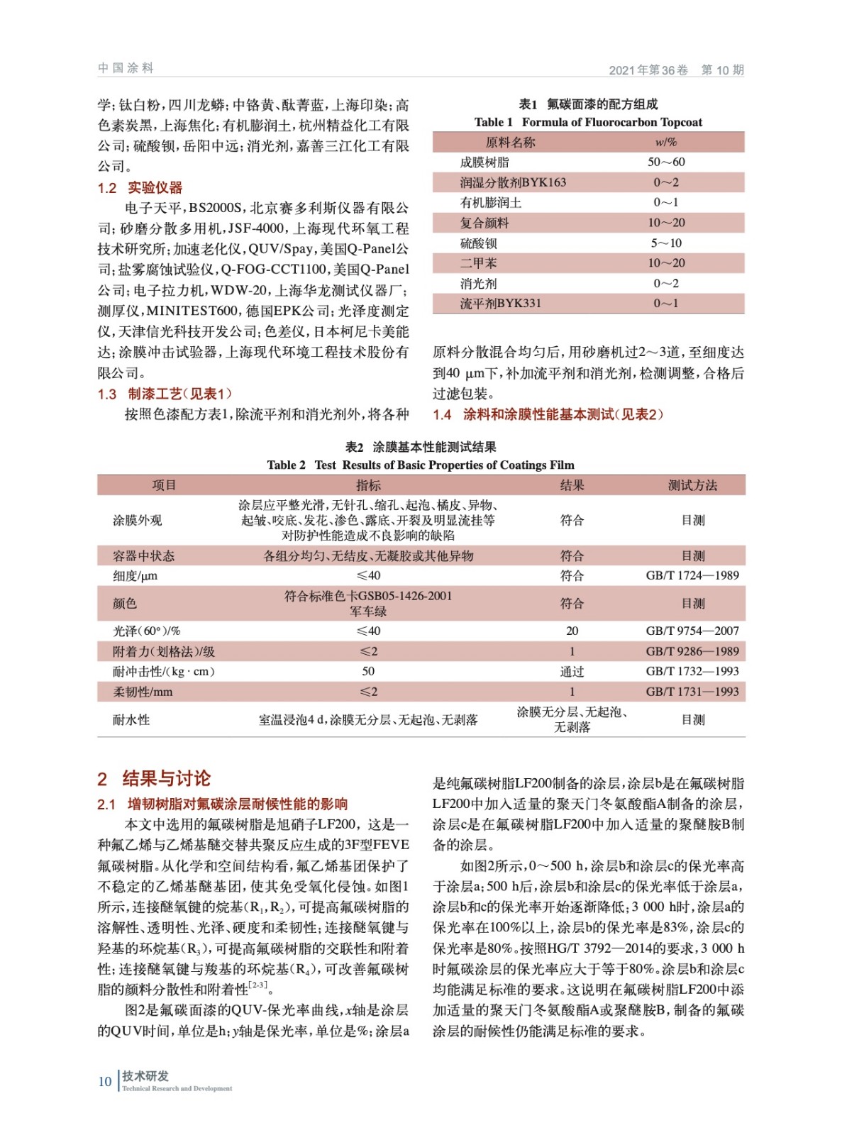 高耐候柔性氟碳面漆的研制與性能研究