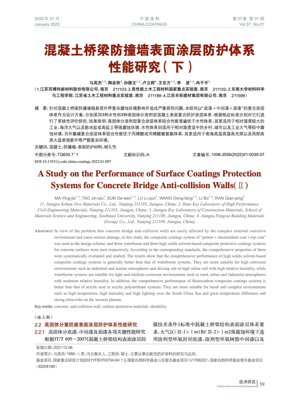本文系作者@馬英杰,陶金秋,孫德文,盧立群,王東方,李 波,冉千平 授權中國涂料網發表,并經中國涂料網編輯,未經允許不得轉載,如需轉載請聯系chinacoatingnet@vip.163.com