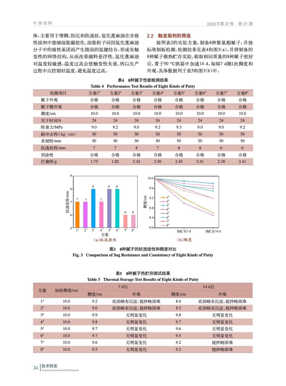 實驗通過多個角度對風電葉片膩子的觸變性進行了探究。測試結果表明,觸變助劑對膩子的機械性能幾乎無影響,通過有機膨潤土和改性聚酰胺蠟粉的合理搭配使用,既能讓風電葉片聚氨酯膩子具有優良的貯存穩定性,又使其有好的抗流掛性和刮涂性。