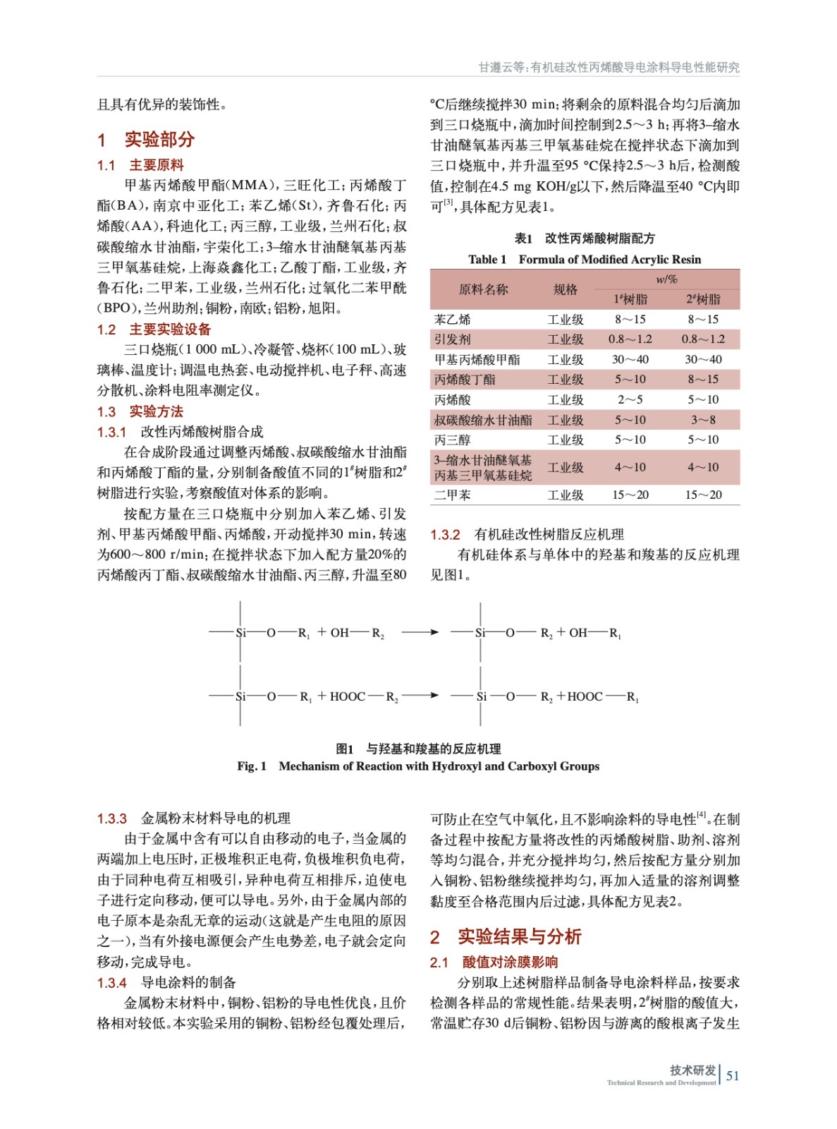 通過使用有機硅材料改性,提高丙烯酸樹脂性能,且涂層可形成致密的網狀結構,提高耐候性和豐滿度。另外,在體系中添加導電性能優異的金屬粉末材料使整個體系導電性能良好。