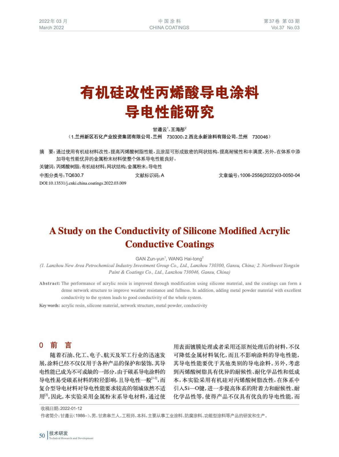 本文系作者@甘遵云,王海彤 授權中國涂料網發表,并經中國涂料網編輯,未經允許不得轉載,如需轉載請聯系chinacoatingnet@vip.163.com