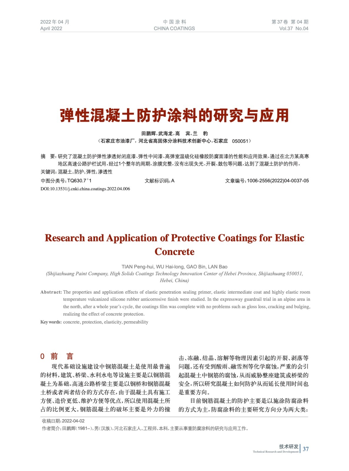 本文系作者@田鵬輝,武海龍,高 賓,蘭 豹 授權(quán)中國(guó)涂料網(wǎng)發(fā)表,并經(jīng)中國(guó)涂料網(wǎng)編輯,未經(jīng)允許不得轉(zhuǎn)載,如需轉(zhuǎn)載請(qǐng)聯(lián)系chinacoatingnet@vip.163.com