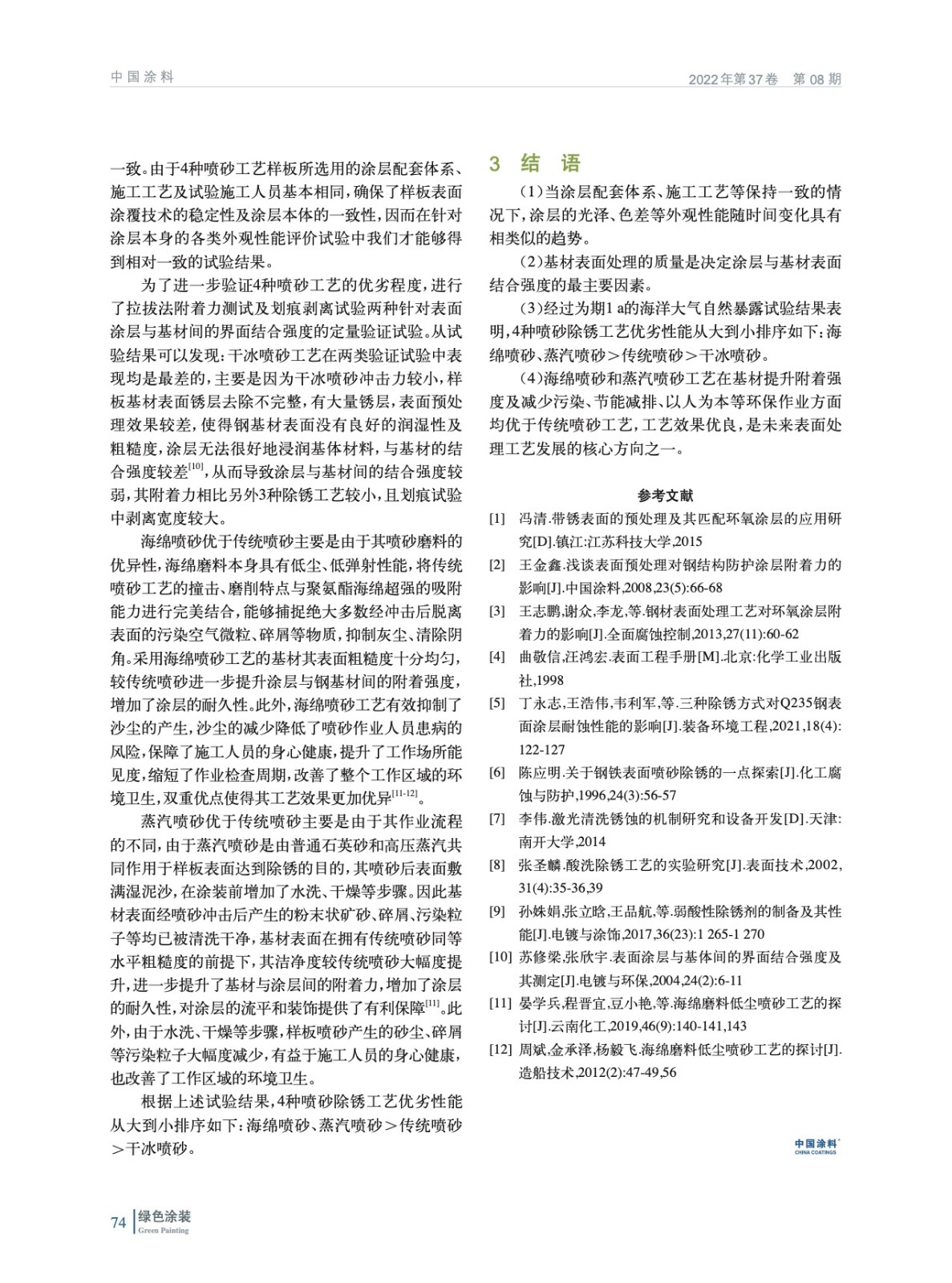 基材不同除銹處理工藝對(duì)涂層性能影響的優(yōu)劣對(duì)比研究