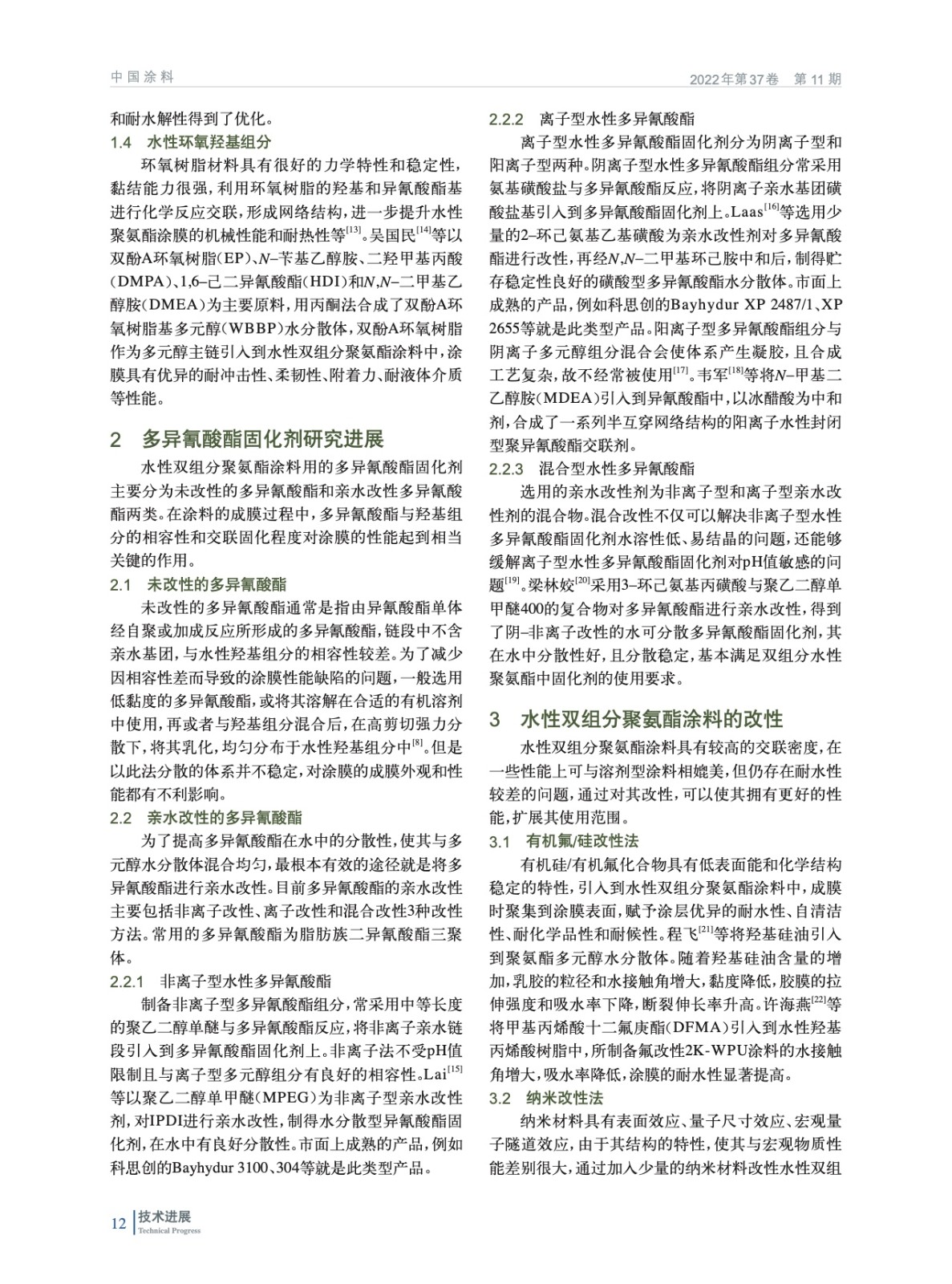 摘要:介紹了水性雙組分聚氨酯涂料的組成,對(duì)其羥基組分、多異氰酸酯固化劑的研究進(jìn)展進(jìn)行了綜述,并論述了其改性研究和應(yīng)用現(xiàn)狀。
