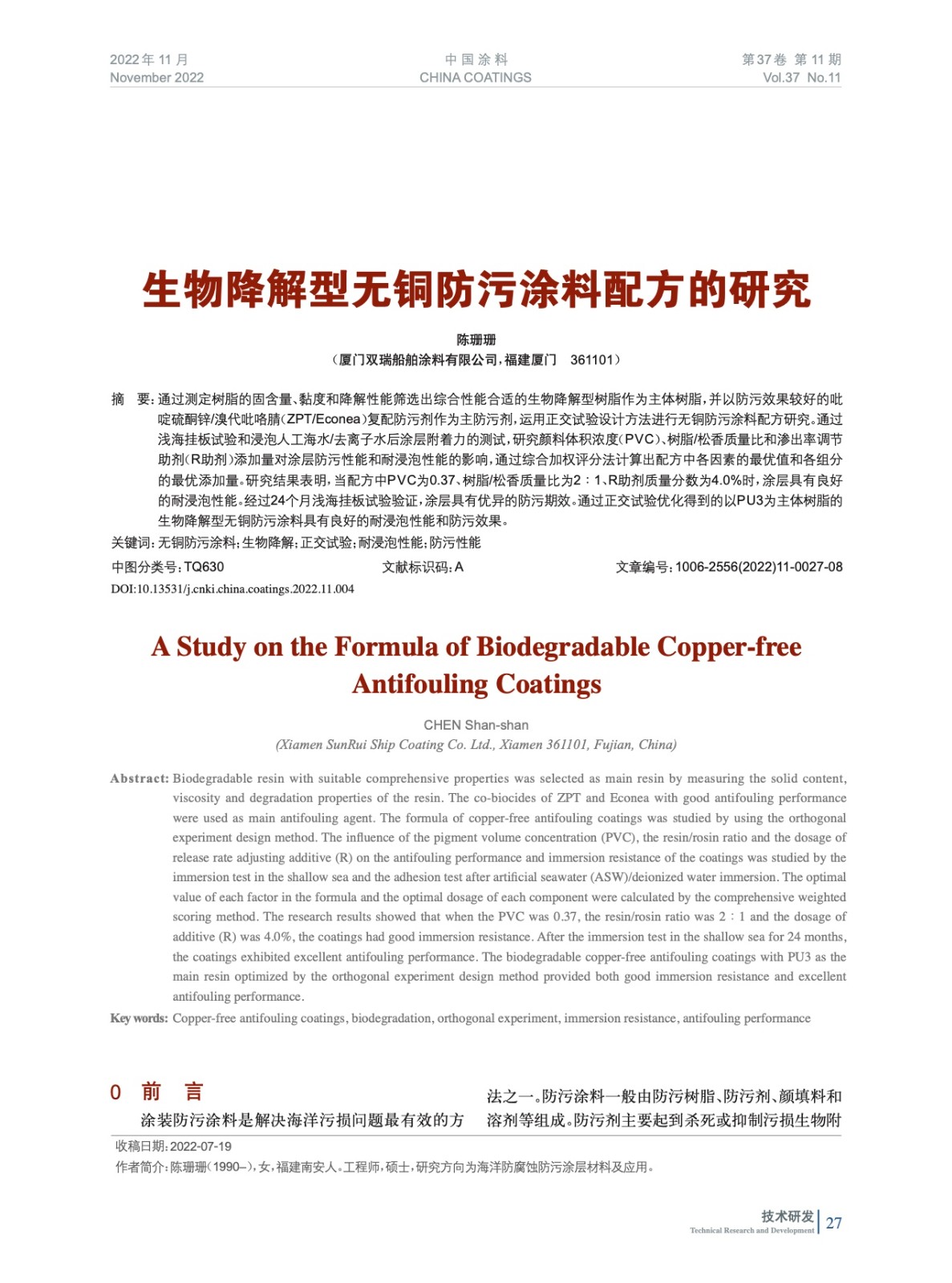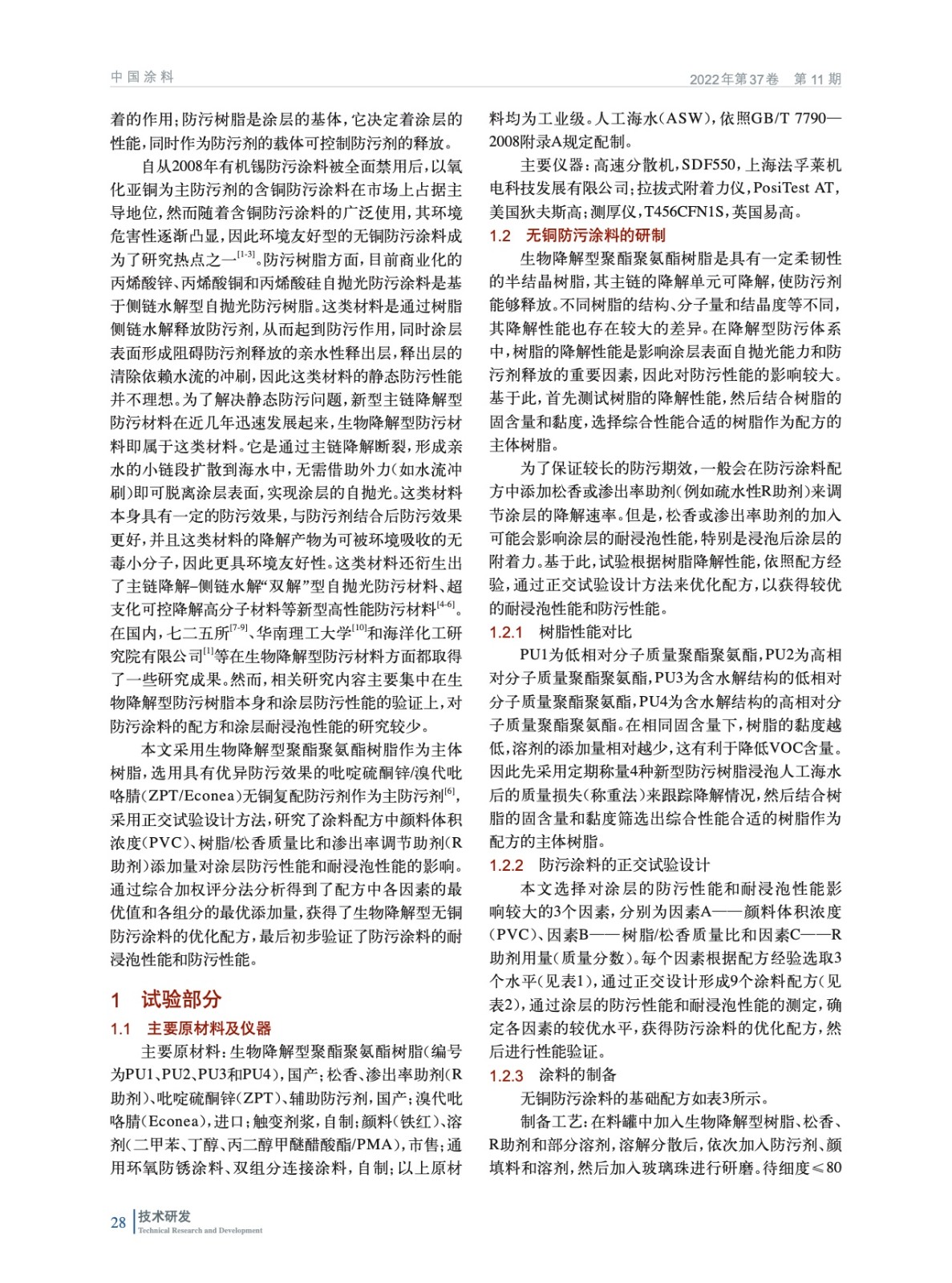 生物降解型無銅防污涂料配方的研究