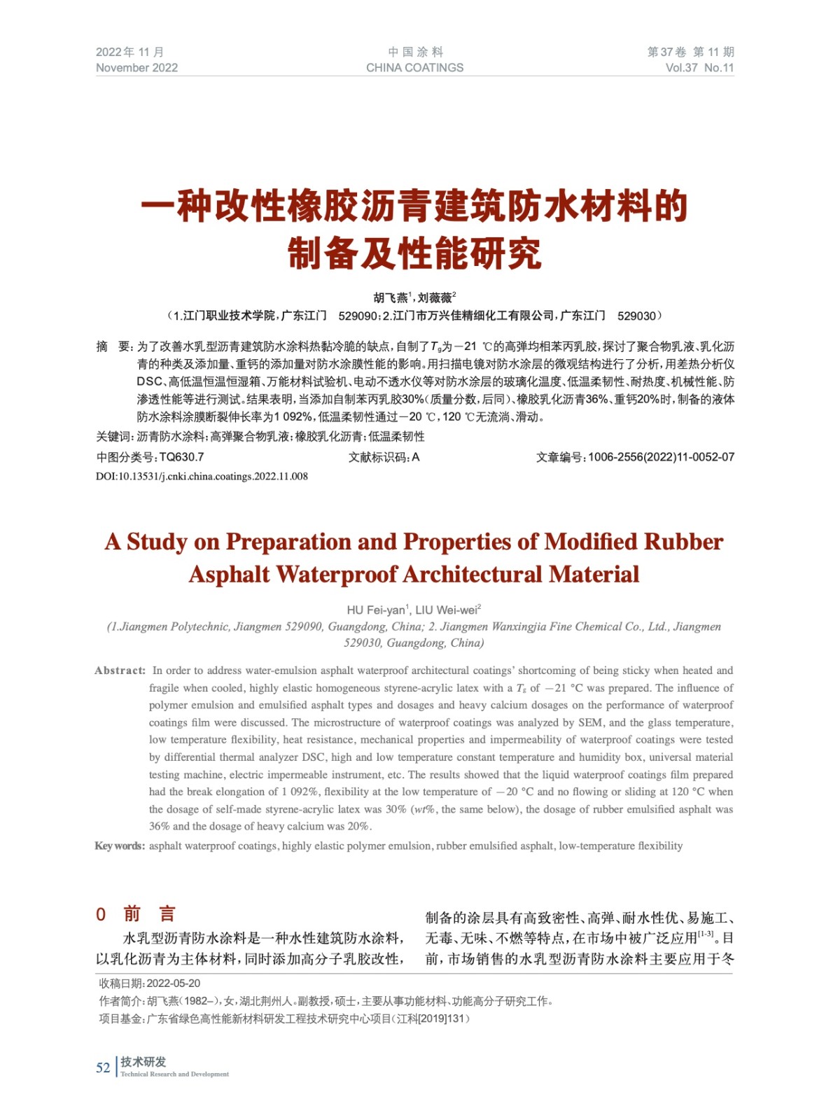 一種改性橡膠瀝青建筑防水材料的制備及性能研究