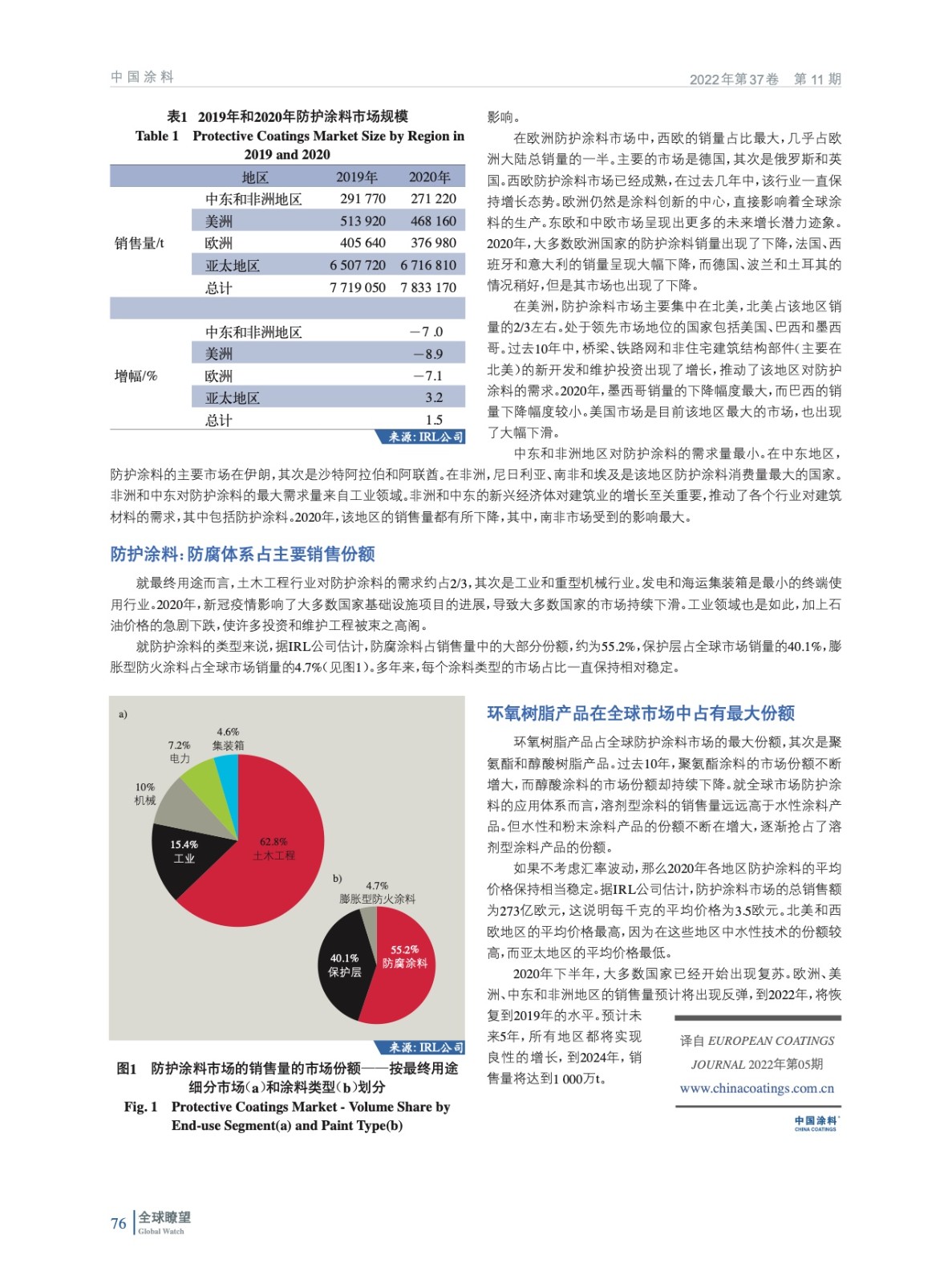 編者按:由于全球經濟受到疫情的影響,防護涂料市場發生了巨大的變化。根據IRL公司研究,估計2020年全球防護涂料市場的規模約為780萬t,與2019年相比略有增長。