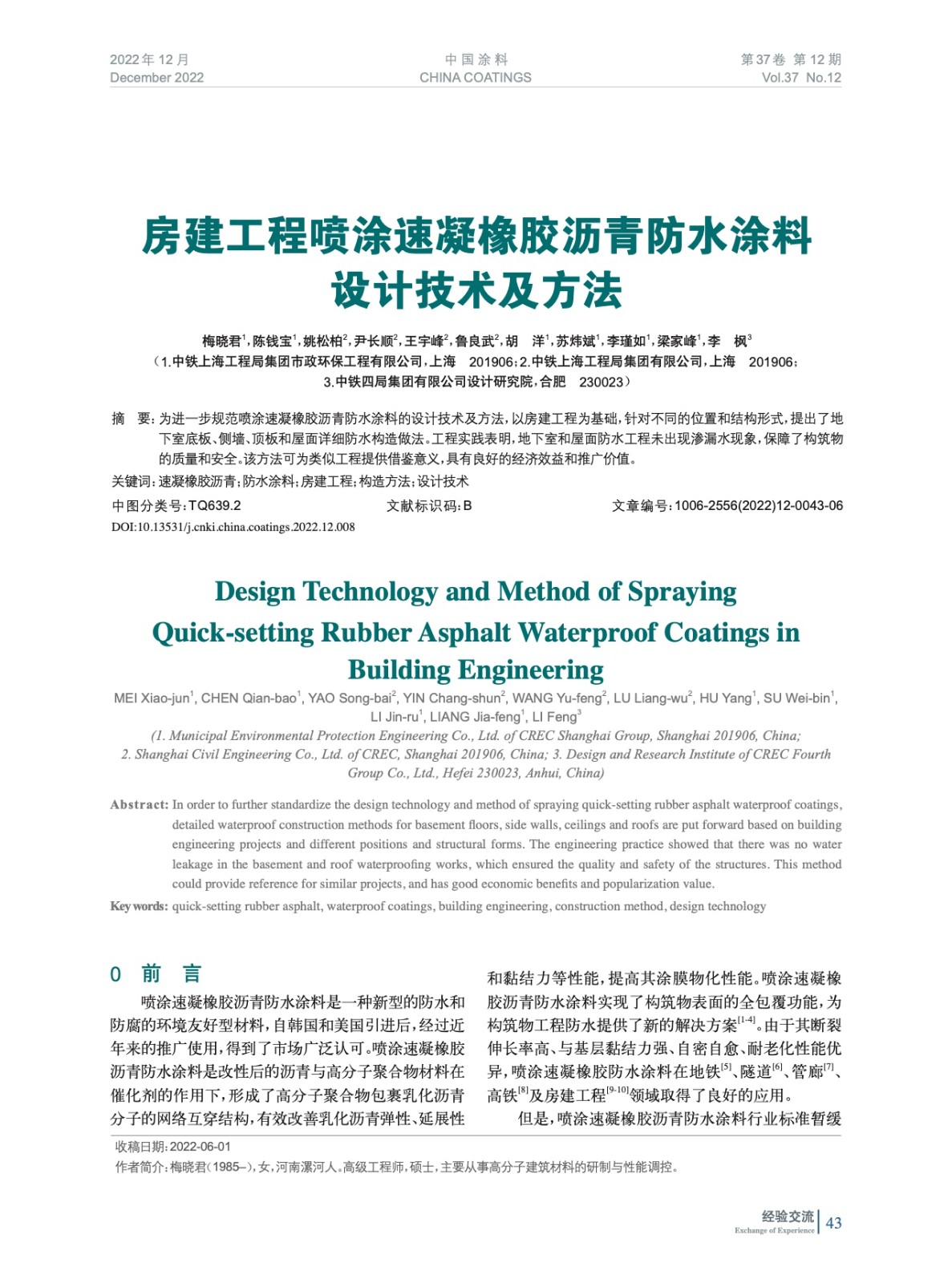 本文系作者@梅曉君,陳錢寶,姚松柏,尹長順,王宇峰,魯良武,胡 洋,蘇煒斌,李瑾如,梁家峰,李 楓 授權中國涂料網發表,并經中國涂料網編輯,未經允許不得轉載,如需轉載請聯系chinacoatingnet@vip.163.com