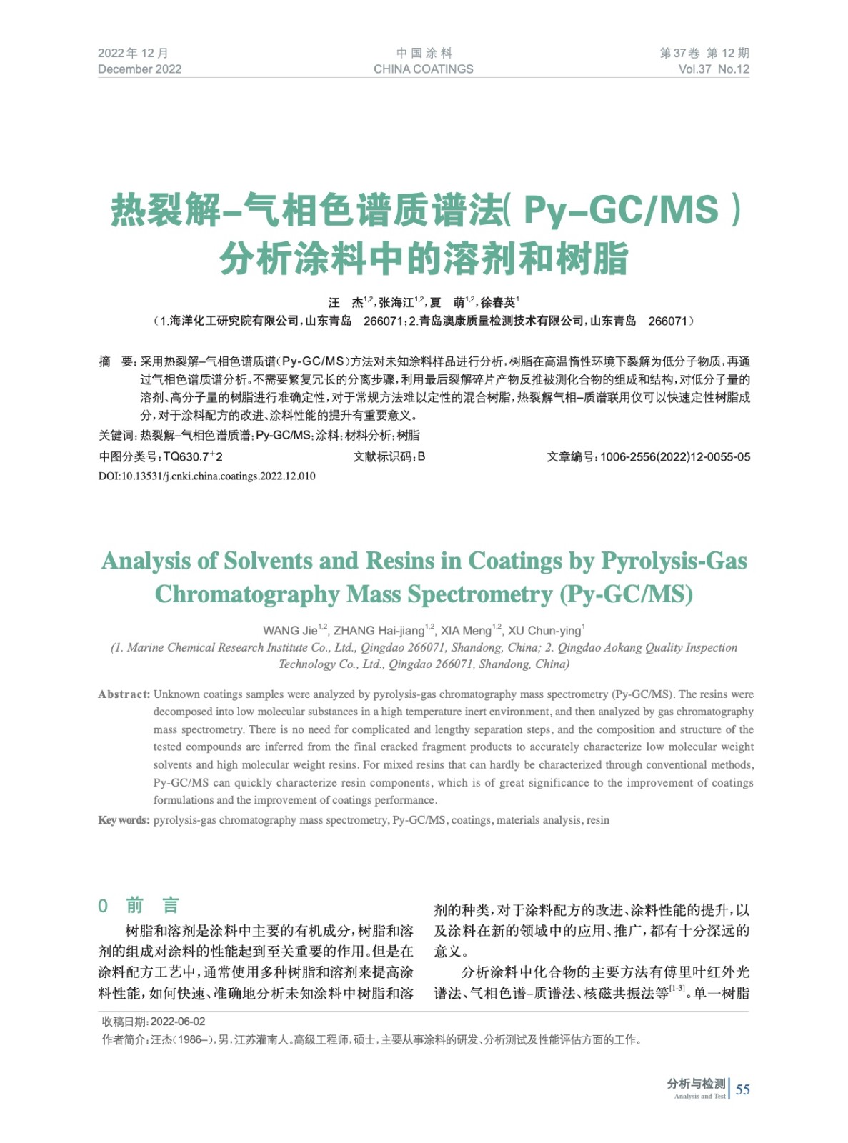 發表于2023-04-07 18:15:35| 次閱讀| 來源中國涂料| 作者汪 杰,張海江,夏 萌,徐春英