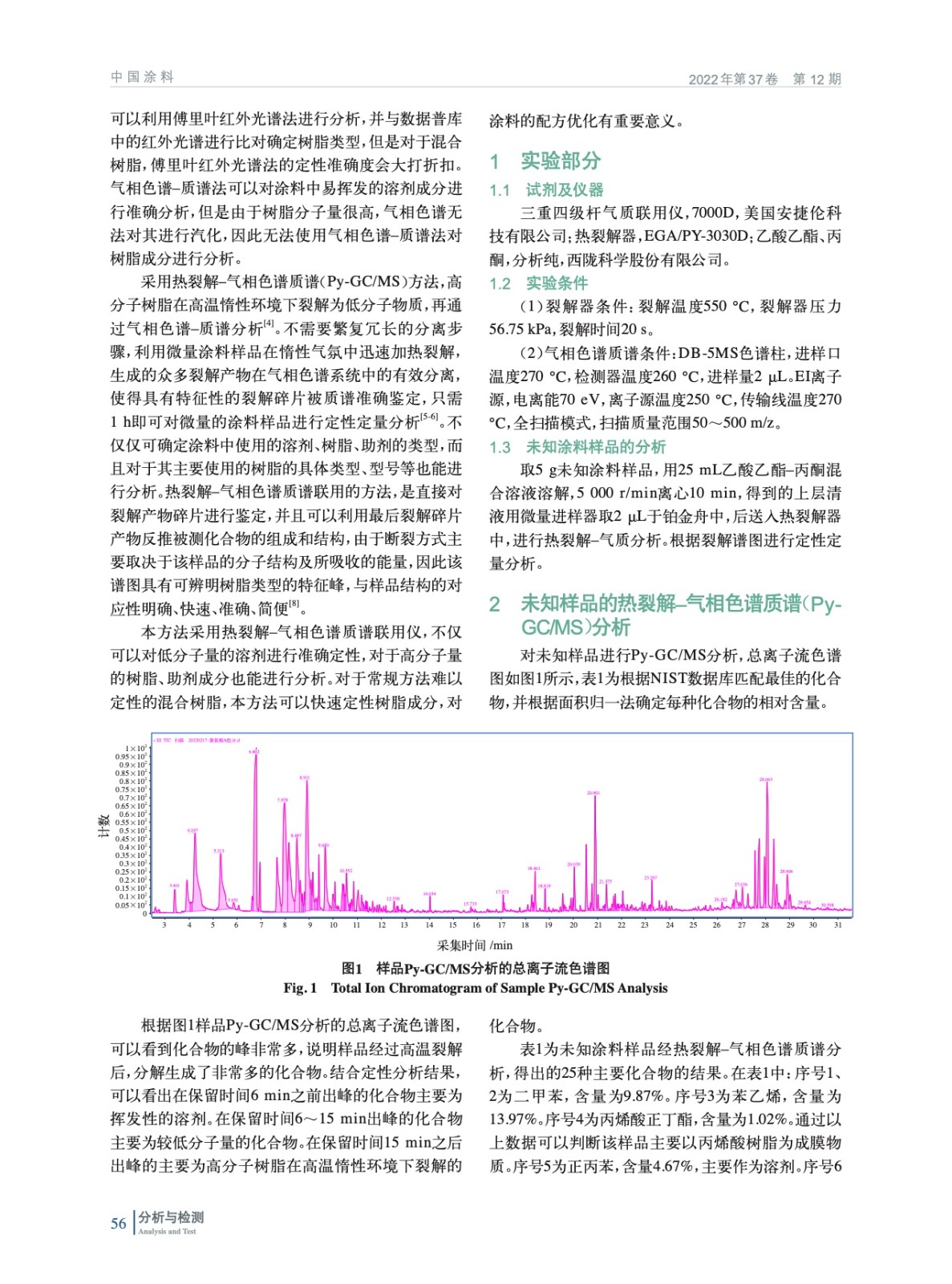 熱裂解–氣相色譜質譜法(Py-GC/MS)分析涂料中的溶劑和樹脂