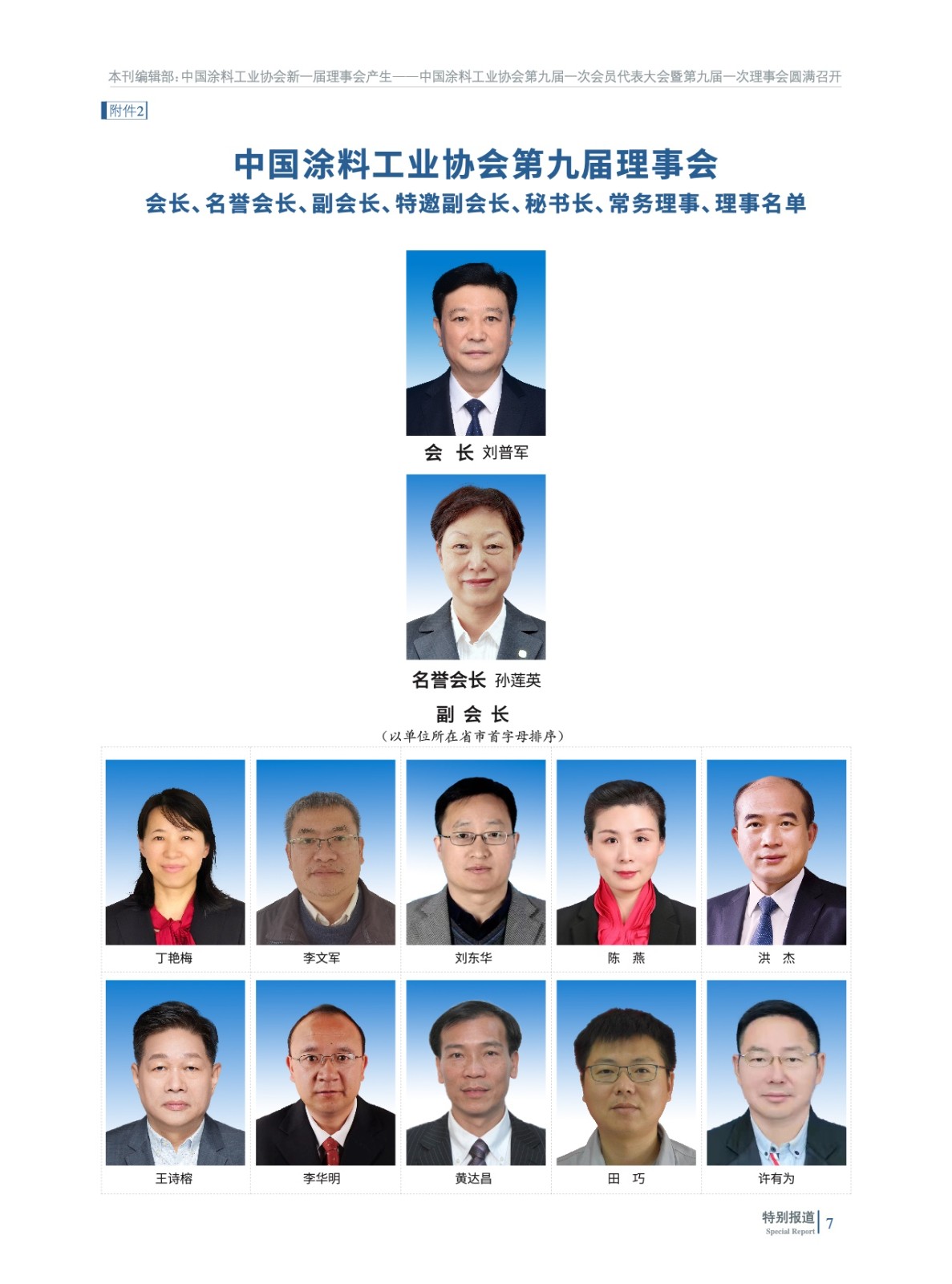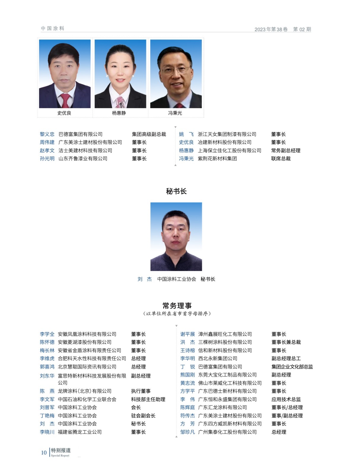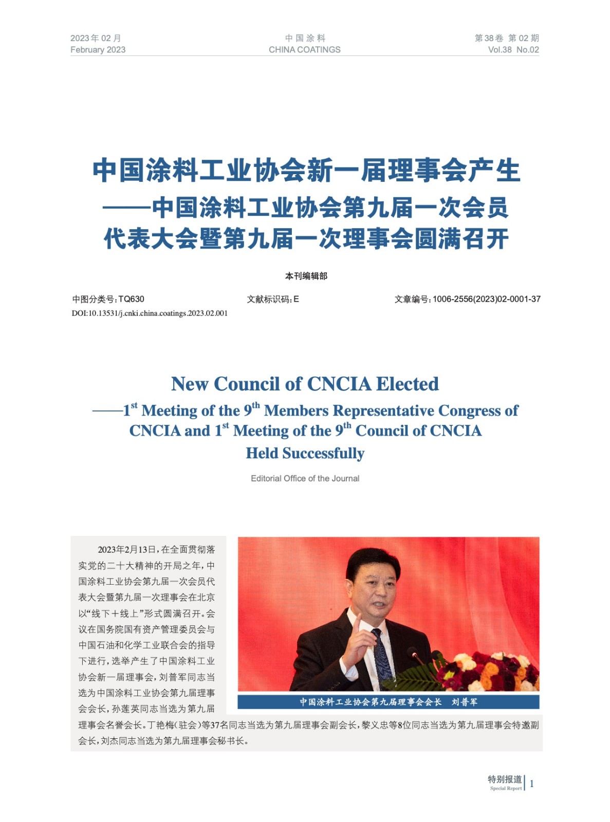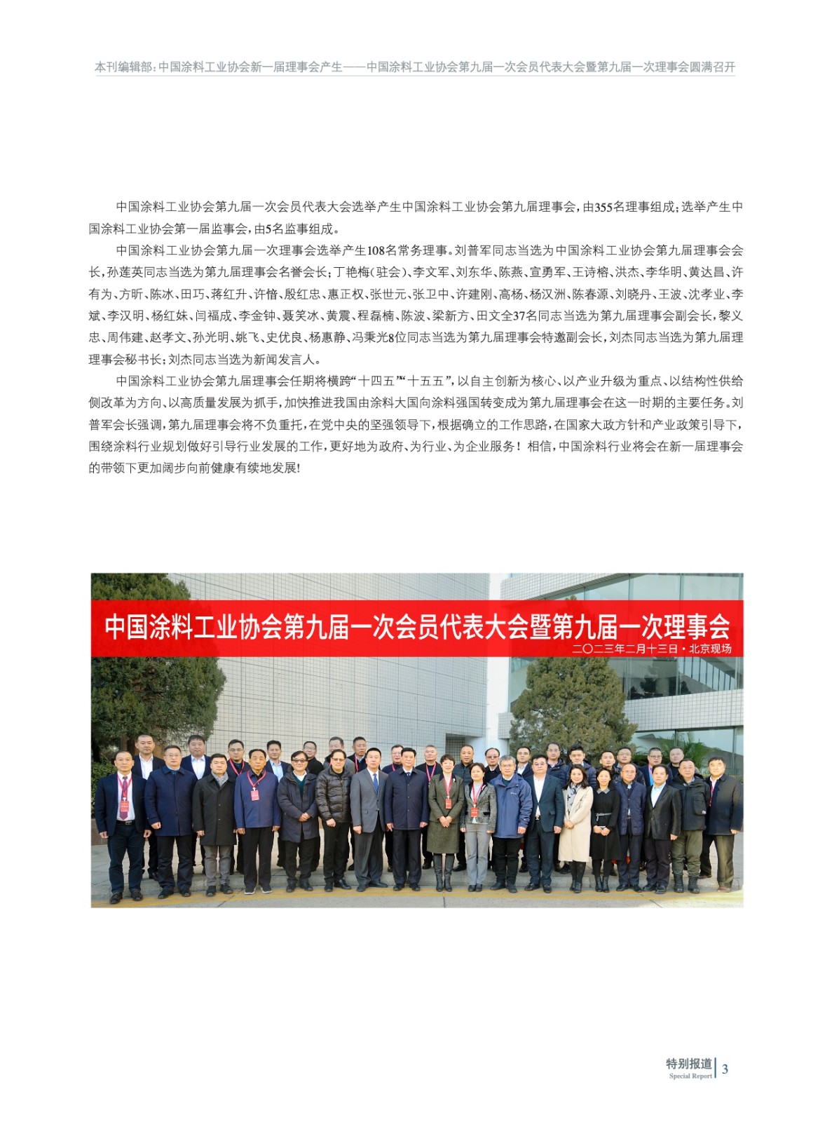 摘要:2023年2月13日,中國涂料工業(yè)協(xié)會第九屆一次會員代表大會暨第九屆一次理事會在北京以“線下+線上”形式圓滿召開。會議在國務(wù)院國有資產(chǎn)管理委員會與中國石油和化學(xué)工業(yè)聯(lián)合會的指導(dǎo)下進(jìn)行,選舉產(chǎn)生了中國涂料工業(yè)協(xié)會新一屆理事會,劉普軍同志當(dāng)選為中國涂料工業(yè)協(xié)會第九屆理事會會長,孫蓮英同志當(dāng)選為第九屆理事會名譽(yù)會長。丁艷梅(駐會)等37名同志當(dāng)選為第九屆理事會副會長,黎義忠等8位同志當(dāng)選為第九屆理事會特邀副會長,劉杰同志當(dāng)選為第九屆理事會秘書長。