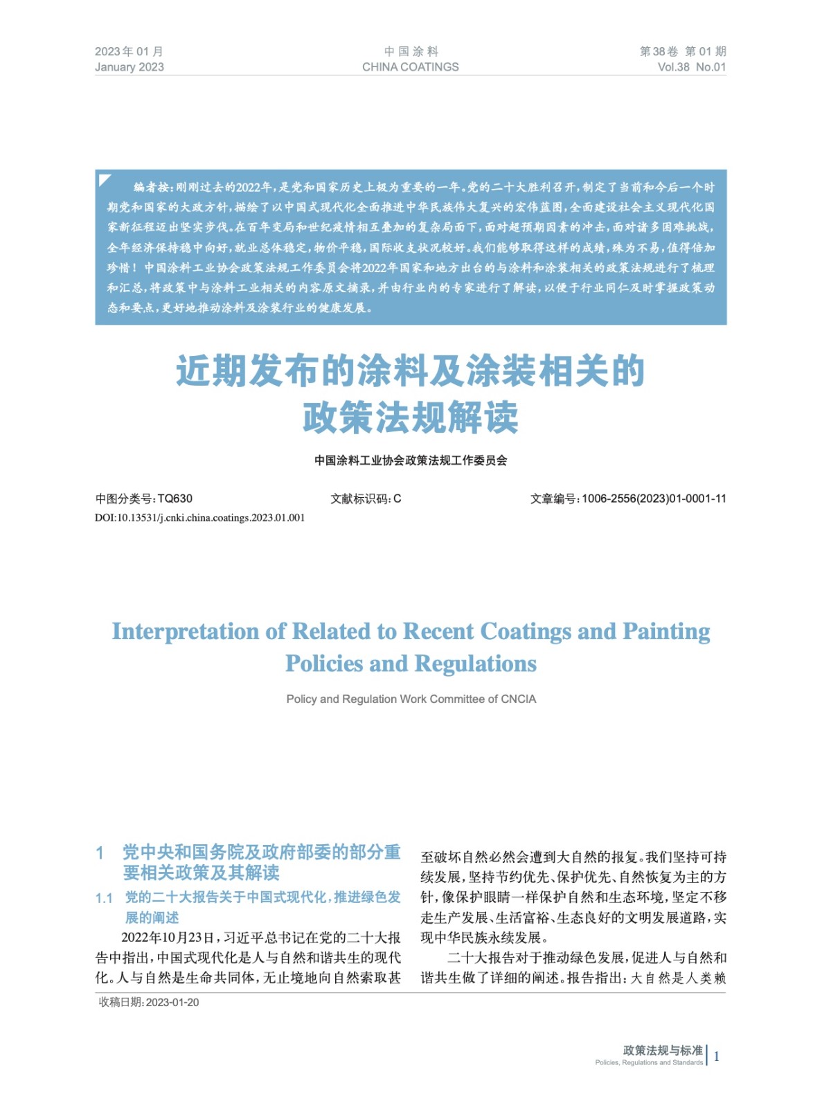 摘要:編者按:剛剛過去的2022年,是黨和國家歷史上極為重要的一年。黨的二十大勝利召開,制定了當(dāng)前和今后一個(gè)時(shí)期黨和國家的大政方針,描繪了以中國式現(xiàn)代化全面推進(jìn)中華民族偉大復(fù)興的宏偉藍(lán)圖,全面建設(shè)社會(huì)主義現(xiàn)代化國家新征程邁出堅(jiān)實(shí)步伐。在百年變局和世紀(jì)疫情相互疊加的復(fù)雜局面下,面對(duì)超預(yù)期因素的沖擊,面對(duì)諸多困難挑戰(zhàn),全年經(jīng)濟(jì)保持穩(wěn)中向好,就業(yè)總體穩(wěn)定,物價(jià)平穩(wěn),國際收支狀況較好。我們能夠取得這樣的成績,殊為不易,值得倍加珍惜!中國涂料工業(yè)協(xié)會(huì)政策法規(guī)工作委員會(huì)將2022年國家和地方出臺(tái)的與涂料和涂裝相關(guān)的政策法規(guī)進(jìn)行了梳理和匯總,將政策中與涂料工業(yè)相關(guān)的內(nèi)容原文摘錄,并由行業(yè)內(nèi)的專家進(jìn)行了解讀,以便于行業(yè)同仁及時(shí)掌握政策動(dòng)態(tài)和要點(diǎn),更好地推動(dòng)涂料及涂裝行業(yè)的健康發(fā)展。