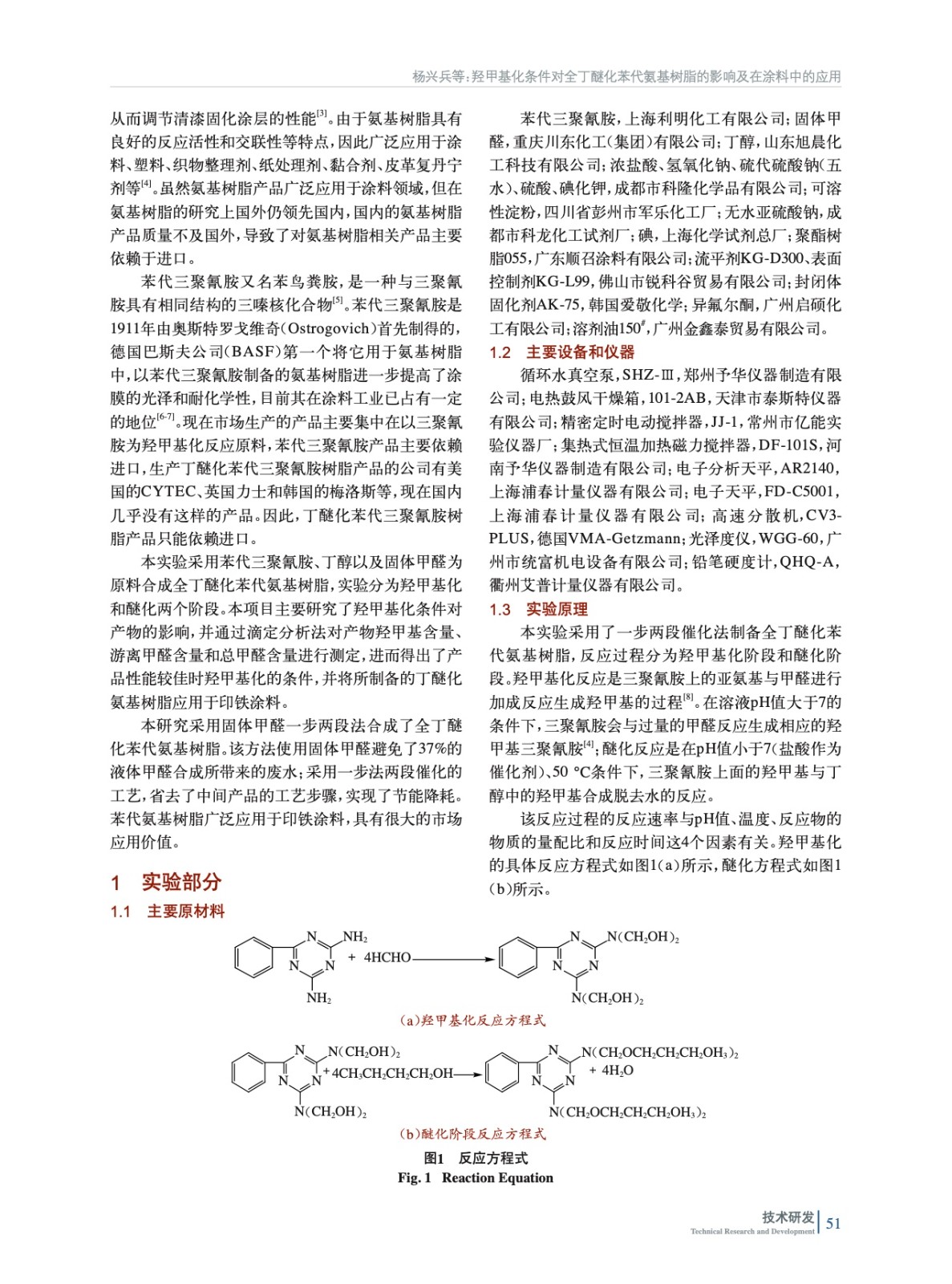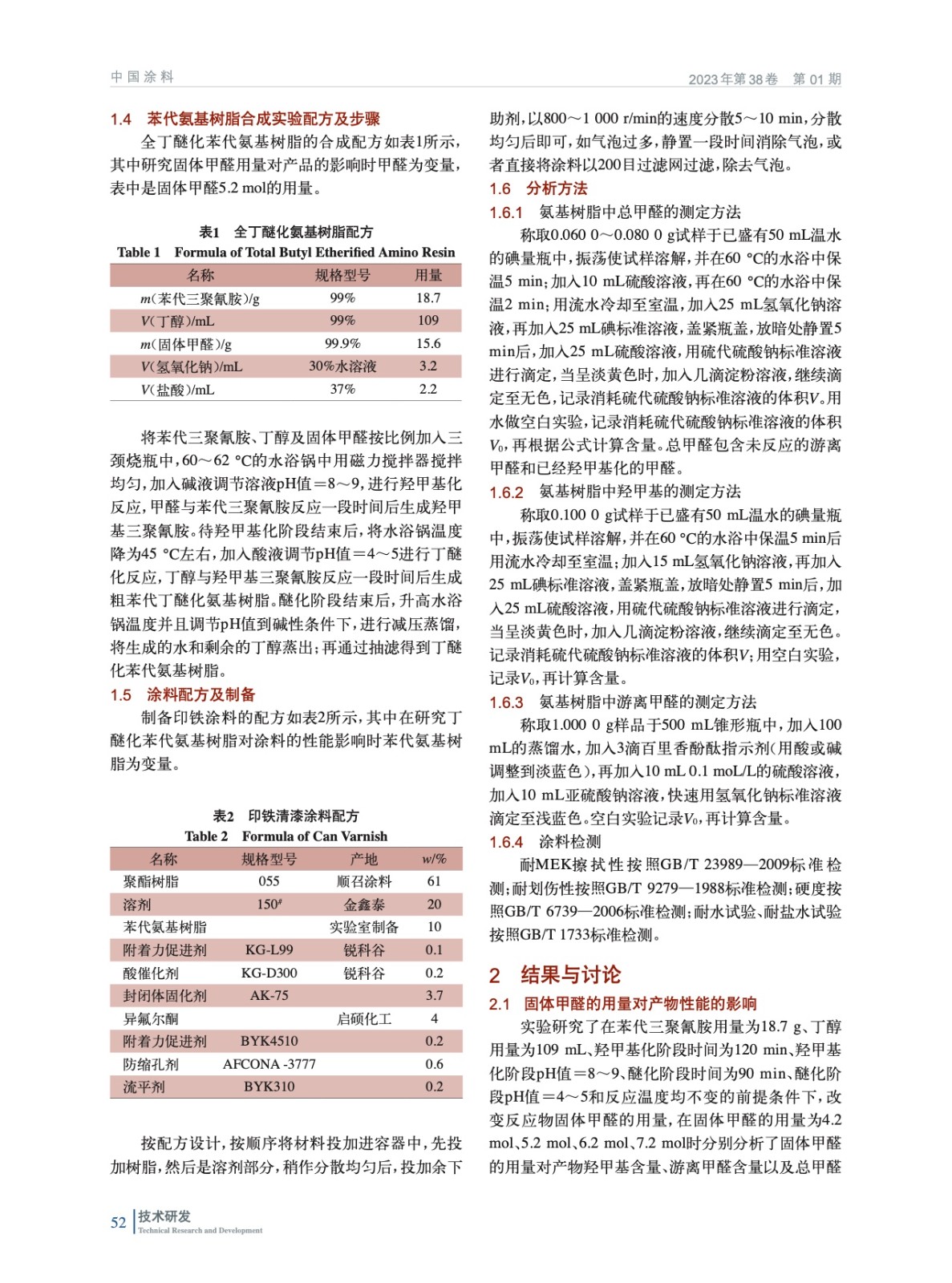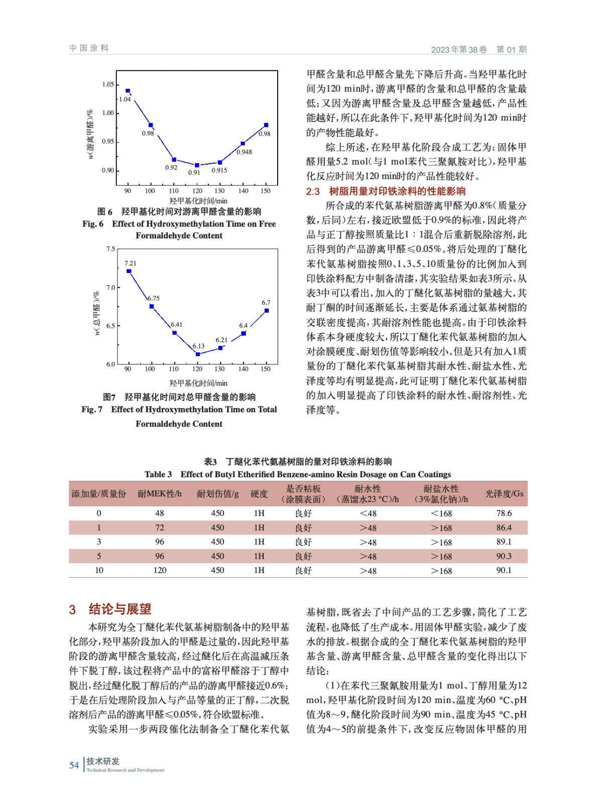 羥甲基化條件對全丁醚化苯代氨基樹脂的影響及在涂料中的應用