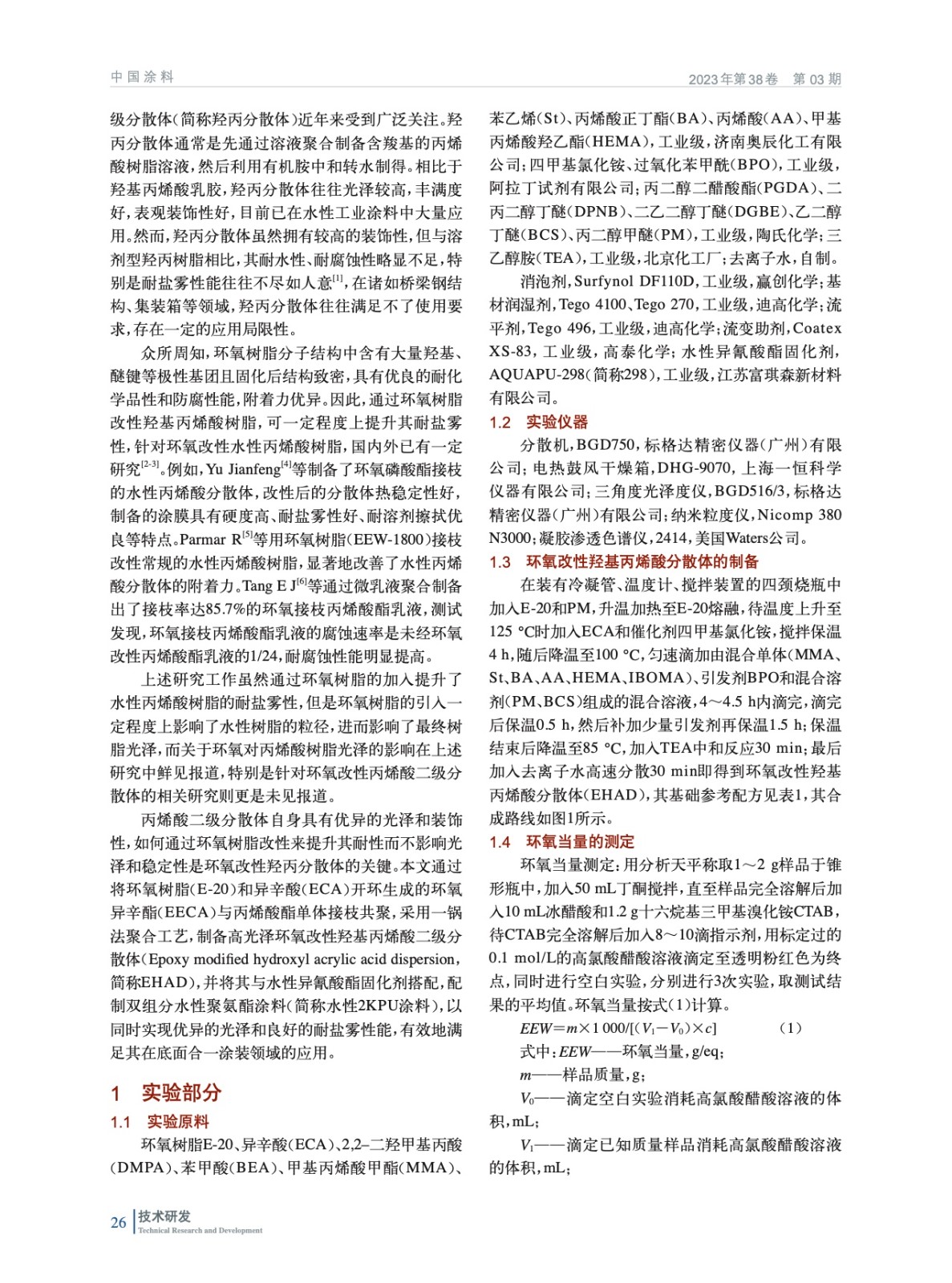 環(huán)氧改性羥基丙烯酸分散體的制備及性能研究