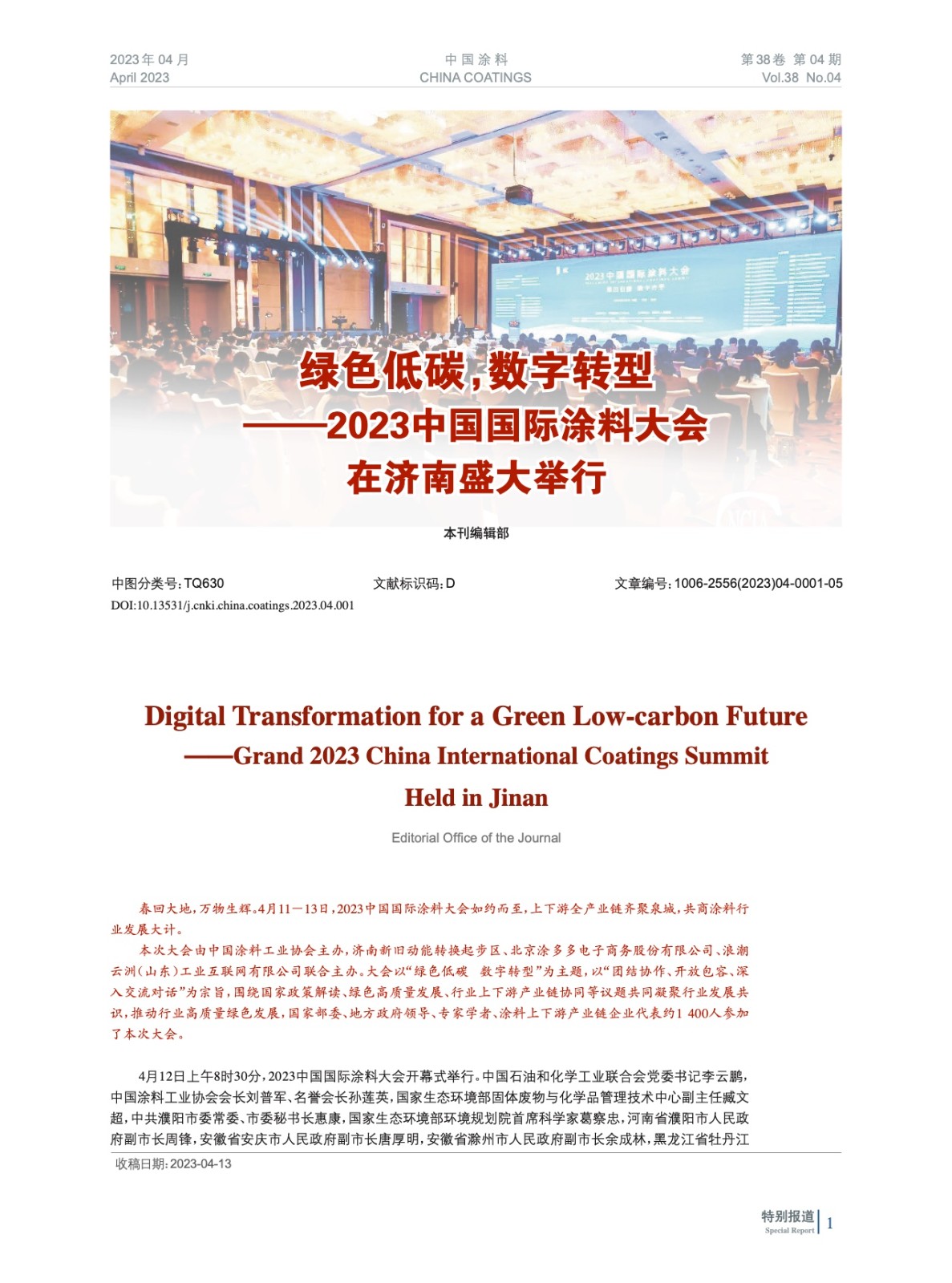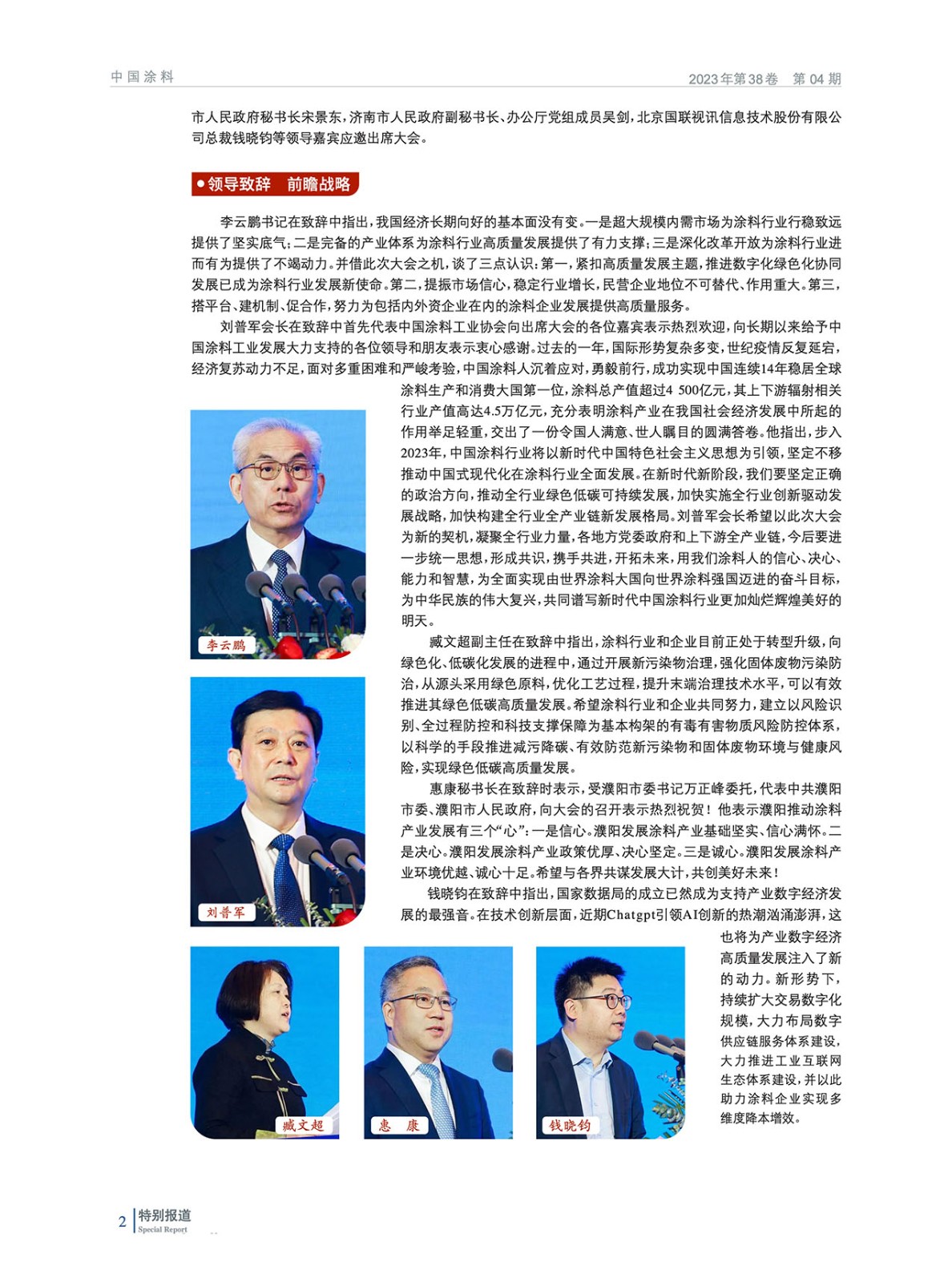 摘要:編者按:春回大地,萬物生輝。4月11-13日,2023中國國際涂料大會如約而至,上下游全產業鏈齊聚泉城,共商涂料行業發展大計。大會以“綠色低碳 數字轉型”為主題,以“團結協作、開放包容、深入交流對話”為宗旨,圍繞國家政策解讀、綠色高質量發展、行業上下游產業鏈協同等議題共同凝聚行業發展共識,推動行業高質量綠色發展,國家部委、地方政府領導、專家學者、涂料上下游產業鏈企業代表約1 400人參加了本次大會。