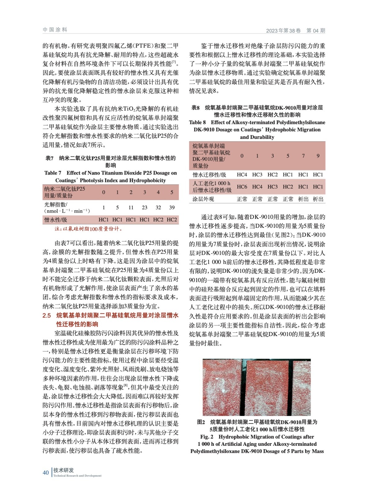摘要:以氟硅樹脂、活性氫氧化鋁、防霉抗藻劑、納米二氧化鈦、烷氧基單封端聚二甲基硅氧烷、異氰酸酯類固化劑和一些助劑等為主要原料,制備了絕緣子用防霉防青苔自清潔憎水絕緣涂料。結(jié)果表明,選用氟硅樹脂作為基礎(chǔ)成膜物能滿足涂層的憎水和耐光解的要求,當(dāng)活性氫氧化鋁用量為60質(zhì)量份時(shí)涂層的耐漏電起痕能到達(dá)TMA2.5級(jí);當(dāng)納米二氧化鈦用量為3質(zhì)量份時(shí)涂層的光解指數(shù)為23 nmol/(L·min);當(dāng)防霉抗藻劑用量為3質(zhì)量份時(shí)涂層的防霉菌性和抗藻性可以達(dá)到0級(jí);當(dāng)烷氧基單封端聚二甲基硅氧烷用量為5質(zhì)量份時(shí)涂層的憎水遷移性可以達(dá)到HC1級(jí)。