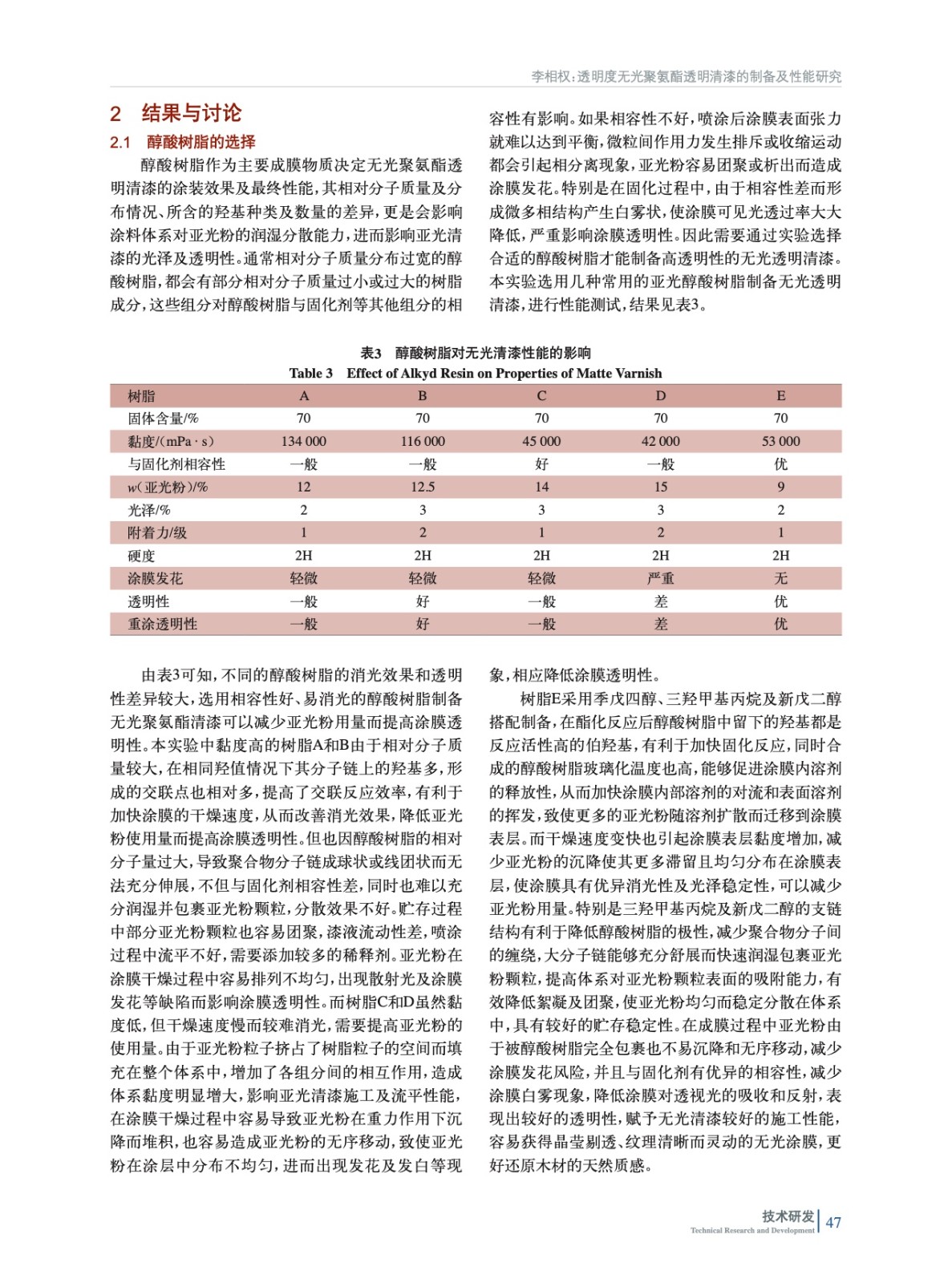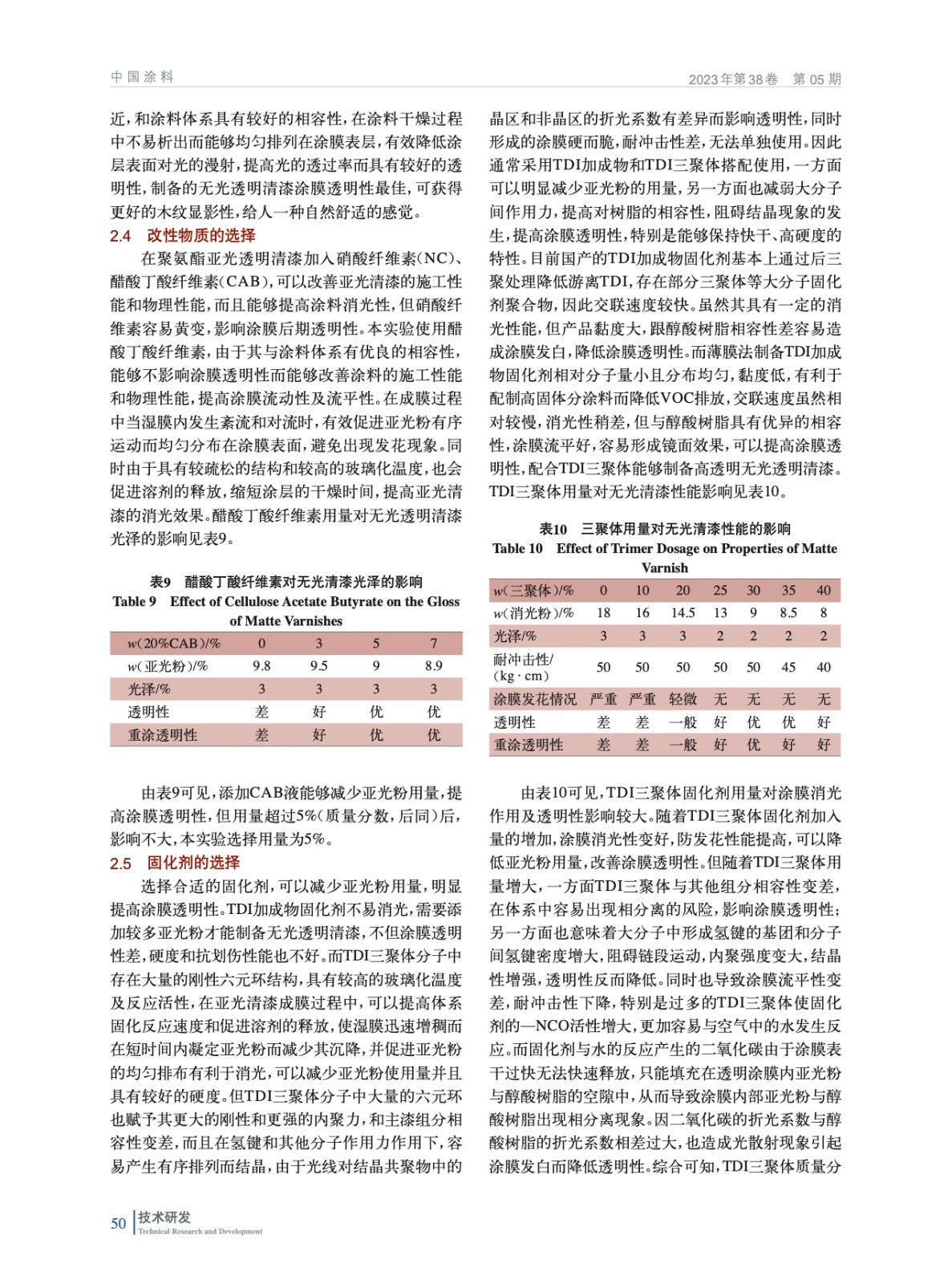 透明度無光聚氨酯透明清漆的制備及性能研究