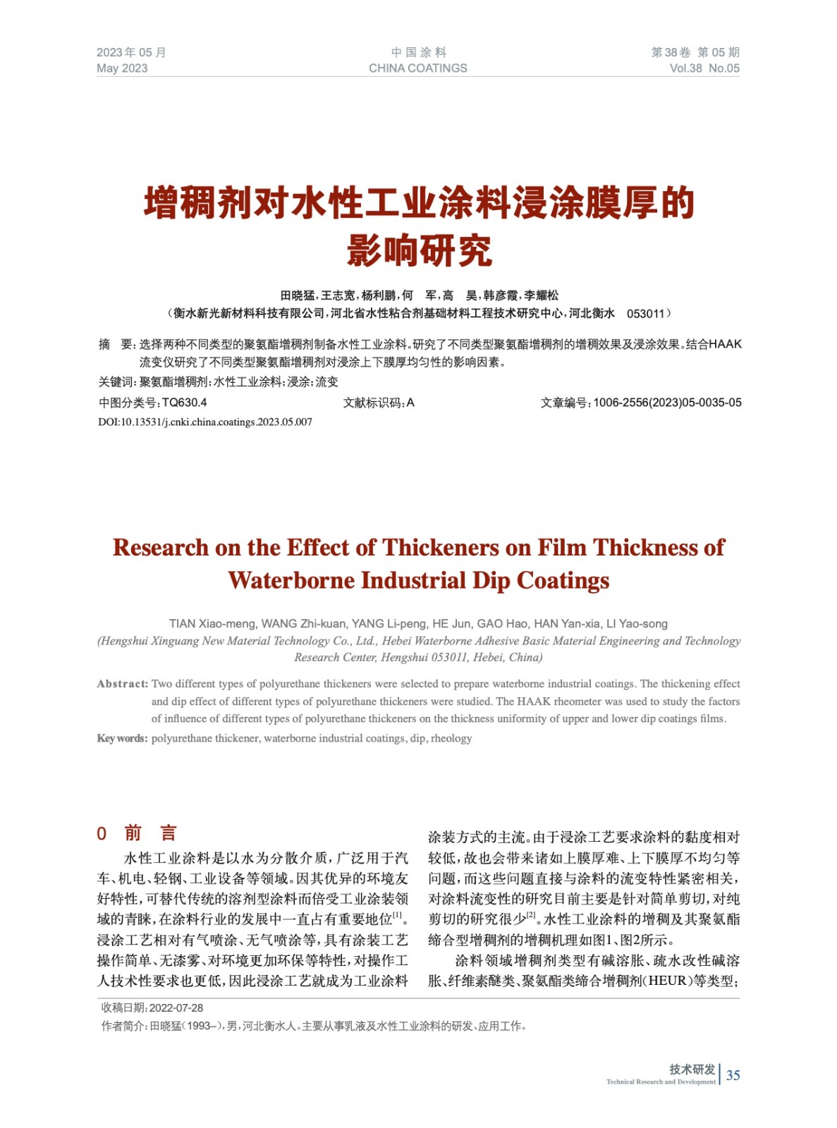 本文系作者@田曉猛,王志寬,楊利鵬,何 軍,高 昊,韓彥霞,李耀松 授權(quán)中國涂料網(wǎng)發(fā)表,并經(jīng)中國涂料網(wǎng)編輯,未經(jīng)允許不得轉(zhuǎn)載,如需轉(zhuǎn)載請聯(lián)系chinacoatingnet@vip.163.com