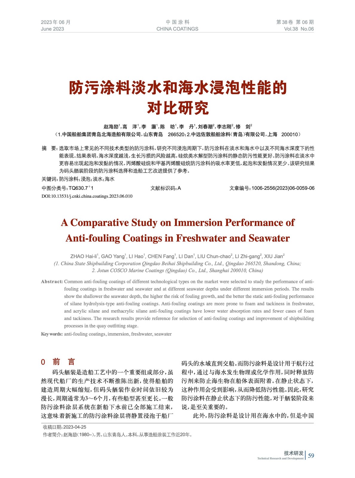 本文系作者@趙海勵,高 洋,李 灝,陳 昉,李 丹,劉春潮,李志剛,修 劍 授權(quán)中國涂料網(wǎng)發(fā)表,并經(jīng)中國涂料網(wǎng)編輯,未經(jīng)允許不得轉(zhuǎn)載,如需轉(zhuǎn)載請聯(lián)系chinacoatingnet@vip.163.com